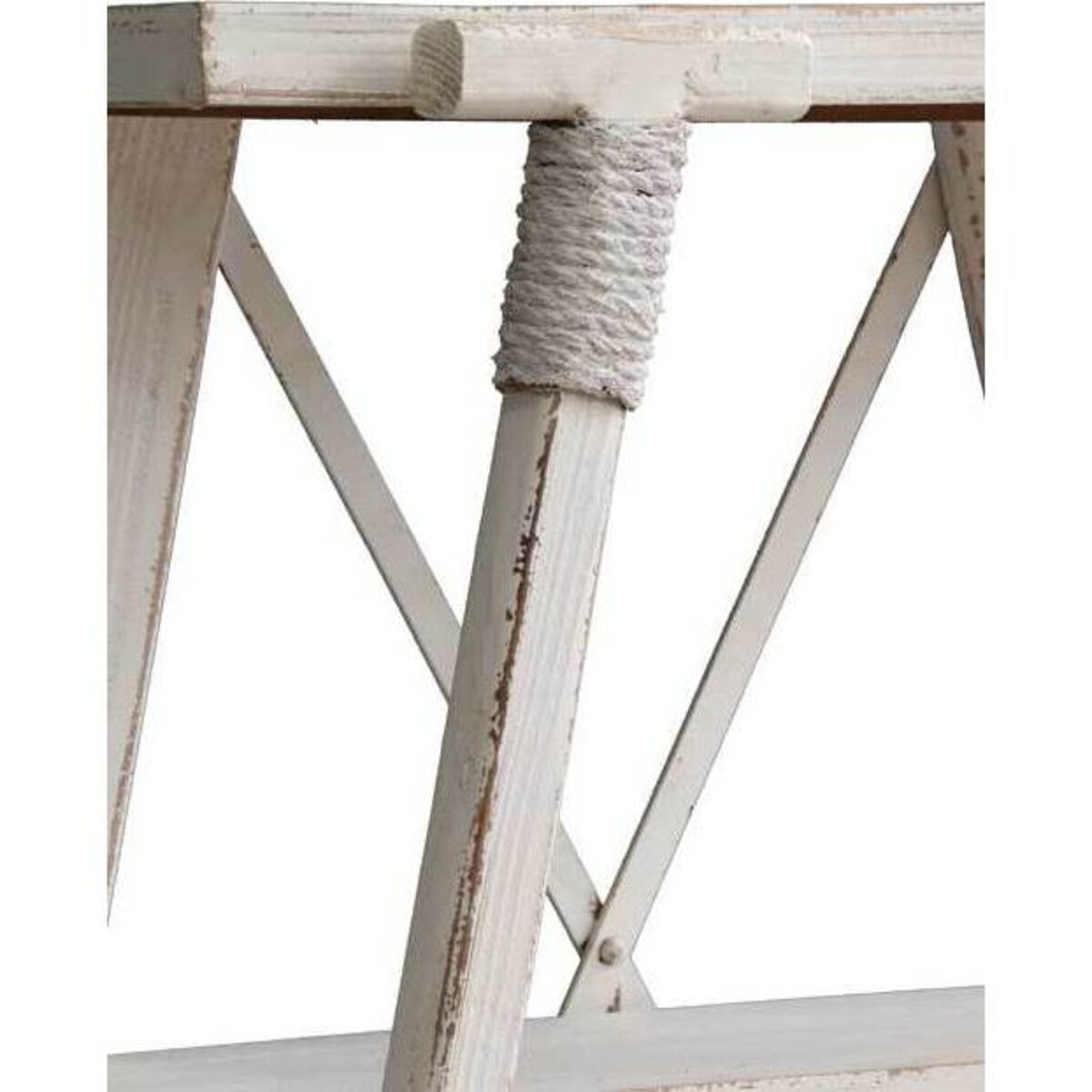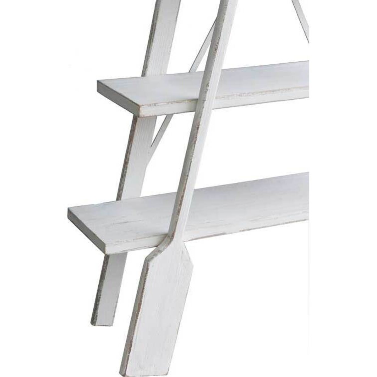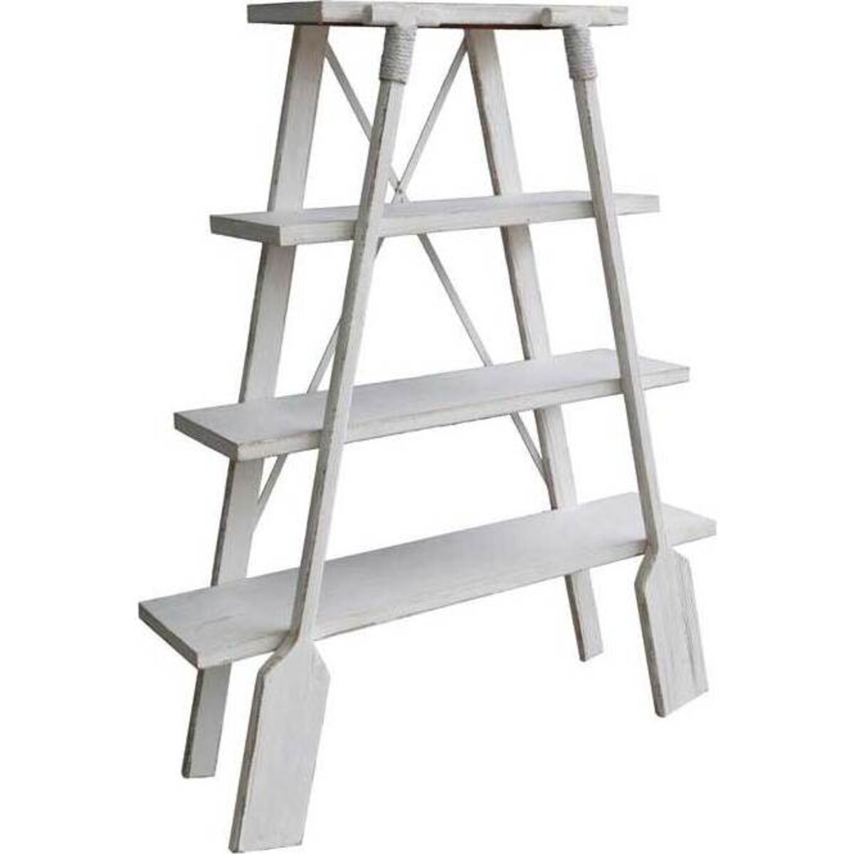 Made of light weight yet tightly grained fir wood, the inverted oars with their broad end on the floor rising to a tapering shape in an inverted V - this is a design that will set the look of any room apart with its completely nautical themed look. Add this to the children's room, add a tiny ship or a model boat a few life savers and you have the décor really singing the tune - or place this in your own room , add a combination of white and blue curtains and say hello to fresh new feel in your room. The shelves come with four tiers of shelves arranged at the same distance. The height of the unit is all of 157 cm while the widest tier is at a width of 150 cm at the bottom and the top most is narrower to give it its slanting shape. The oars and their tied up tops look positively thrilling and there could not have been a design more close to home when it comes to the nautical theme. The structure and the shape will ensure that the shelves function with perfection holding all and sundry to make space management worth its while.