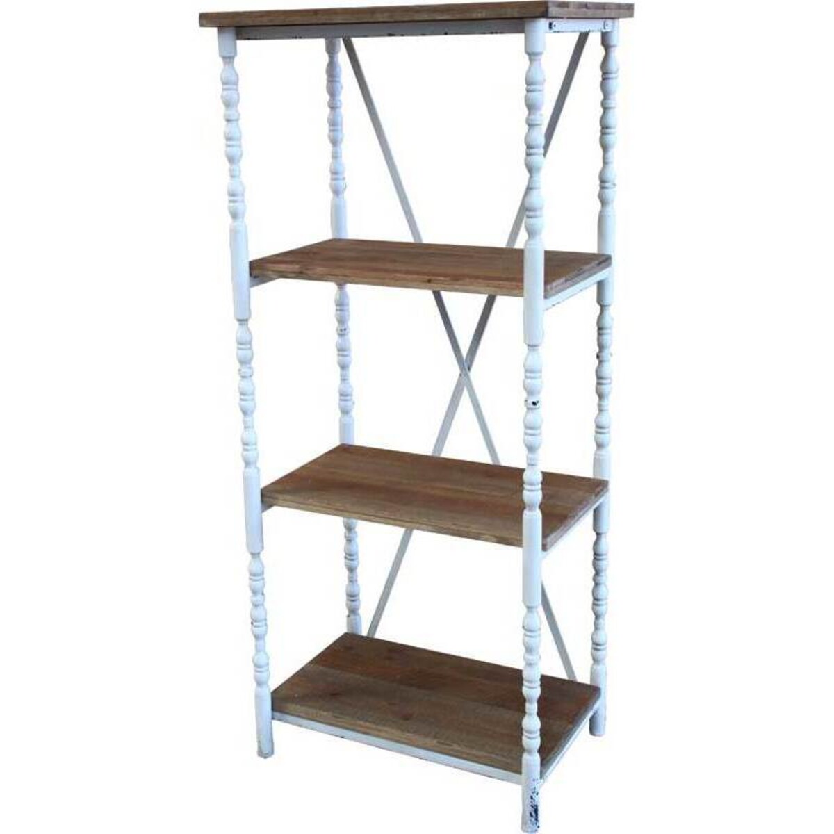 The four shelves will be a great advantage for your storage needs. The tall stand with four shelves stands at a total height of 136 cm and a width of 57 cm , most useful in any home that is constantly in need of better organization in its cluttered rooms. The strong structure comes from the fact that the frame is made of metal that gives the shelves also this lightweight feature and thus it can be carried around and placed in which ever place one wishes to. The shelves are made of wooden planks that are given a rustic finish. The metal frame has an archaic look with design reminiscent of period piece furniture, for example the bauble ribs and the rather ornate look it produces and also the fact that despite its lightweight feature its has great stability and balance. This could be sued in the outdoors to place some potted plants, in the children's room to hold all their books and toys or simply as rack in the closet as regular shelf unit. The feature that attracts most is the dual tone colour - the brown of the wood alongside the white of the iron frame.