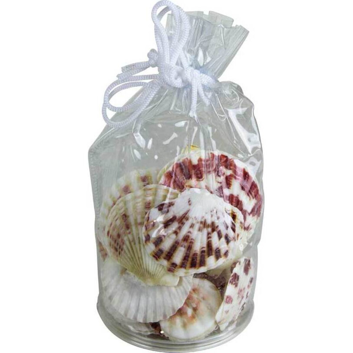 When a seashell shape comes to mind, typically its the kind of shape found in the shells of the Shell Bag Radial Fan by LaVida. These shells feature a fan - like pattern radiating from a single point in the base of the shell. The shells in this collection are white with natural streaks of burgundy red, deep brown and light tan. These shells can be used throughout the home in a variety of applications. Displayed in a crystal bowl, these shells take on an elegant appearance. Added to a glass candle holder, these shells help create a romantic, coastal - inspired presentation.