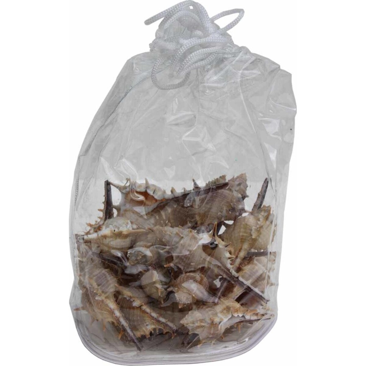There are a variety of sizes in each bag and each shell is different from the rest. These beige and brown shells all have a similar shape - a pointed front, rounded middle and a long, thin pointed end. What makes them really stand out are the spikes that run along the spines of the shells. They're fun and funky while still having style. Display the shells around the home, especially in rooms that have a coastal or eclectic theme. They're not only great indoors as they are wonderful to use in outdoor landscaping. They come in a clear bag that knots at the top for easy storage.