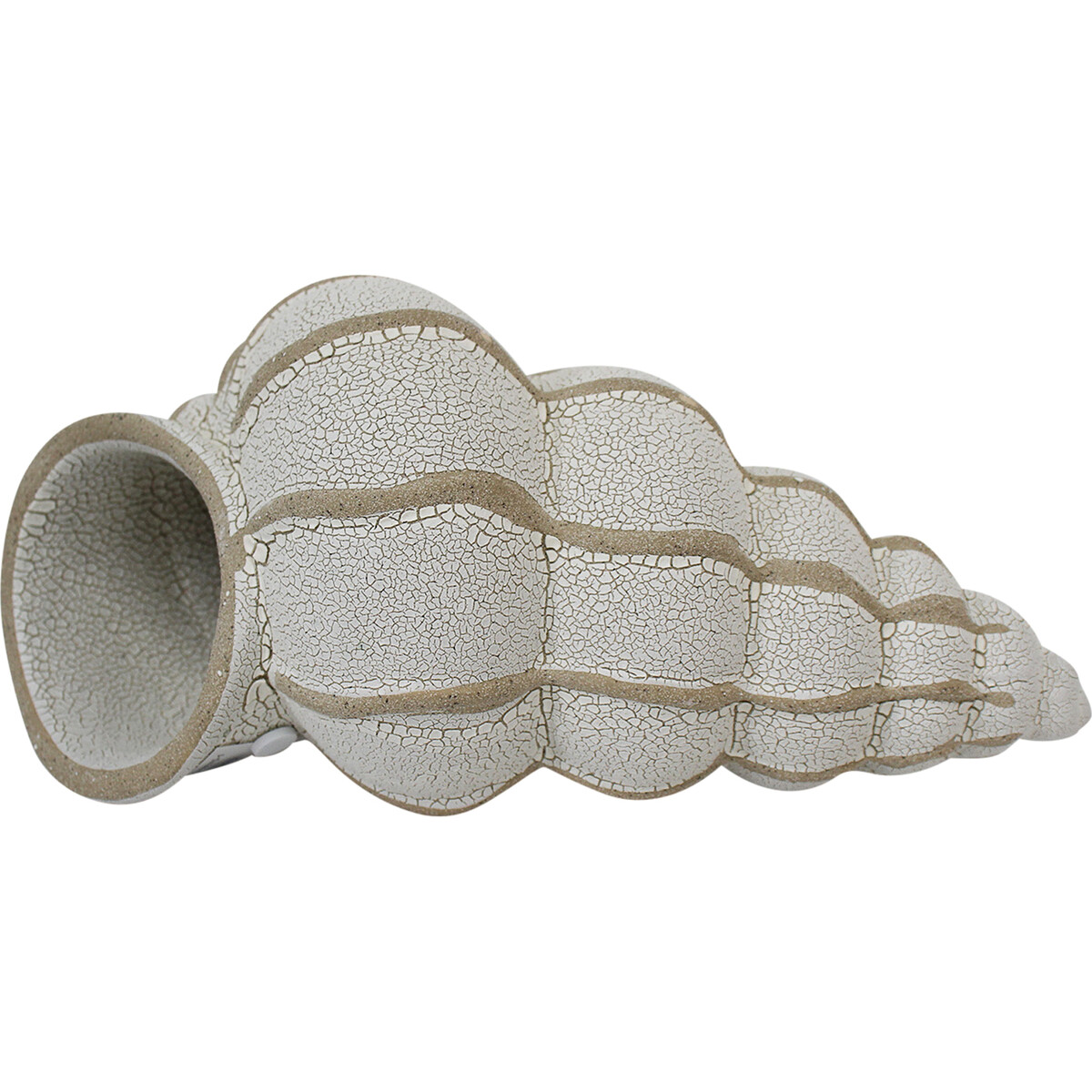 Created by experts who know the art of creating marvellous shapes and forms from ceramic-the spectacular piece has a subtle colour play and a dramatic shape insured by the sea-the spiral shell body make an impression that will help make your love for a sea side décor come alive with more charm. the shape and the textured finish given to it makes this a great pick if you wish to add more drama on your beachy look space. The shell is about 23 cm in length and 12 cm in height. Can be placed on the floor next to lamps or could be part of your table top space-or be part of the green corner. Will bring in the beauty of colour and shape with its presence. The ceramic work evidently displays a delightful crafting technique that uses traditional methods to give it gorgeous sheen and the needed texture to make it looks like a real shell. Delight your spaces with this beachy look ceramic art and give it whole new liveliness.