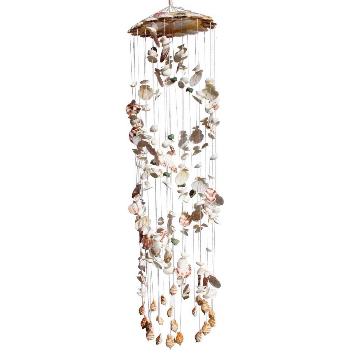 A series of vertically hanging strings are woven through a variety of small multi-coloured shells and formed into a spiral pattern that creates a lovely change from the typical straight hanging windchimes. Each shell has its own unique look, colour, and pattern you'll adore, and while you'll love the sound as the shells clink together, you'll get just as much joy examining each shell individually. Hang the windchime indoors or out and this decorative accent is sure to add a lovely touch of colour to your home.