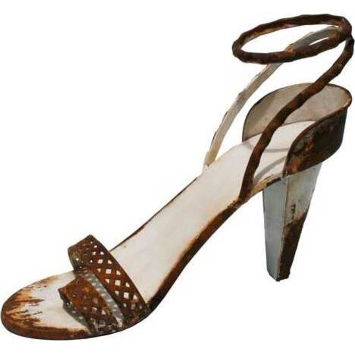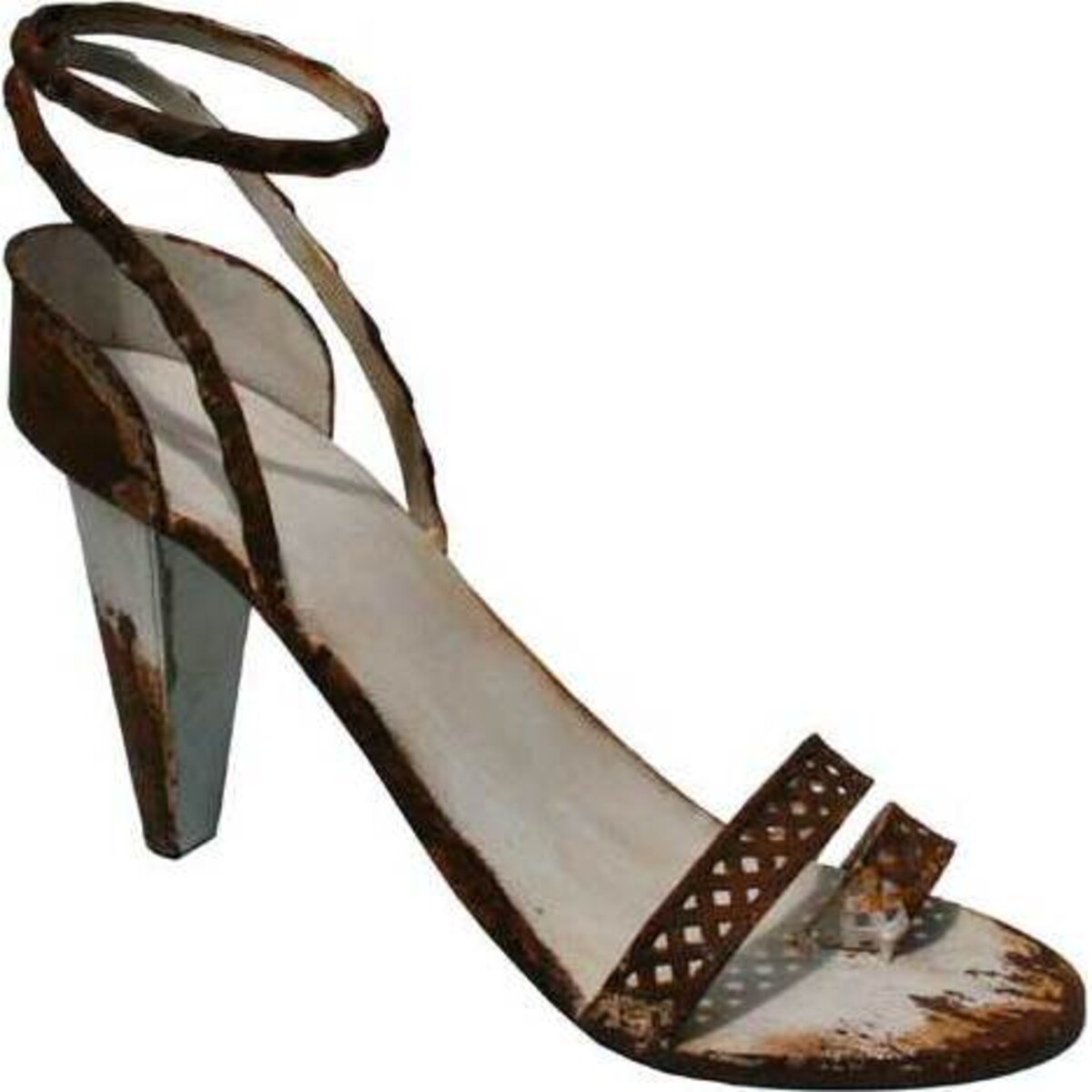 This distinctive item is ideal to apply a hint of fashion and chic to the home. The design is in the form of a right high-heeled shoe - a Croix-influenced style, ultimately elegant and exuding panache with the swirling ankle straps. Wherever this item is placed, it will draw the curiosity of those with an eye for fashion, clothing, and art. The rustic, aged look of the decorative shoe adds a timeless quality and a mystique that is both attractive and alluring. Perfect for interior designers, the item is perhaps best displayed in isolation on a display box or within a cabinet, so that the sleek lines and pleasing form are most appreciated. The elegance and beauty of this decorative shoe will appeal to many, especially those with an eye for the chic and glamorous.