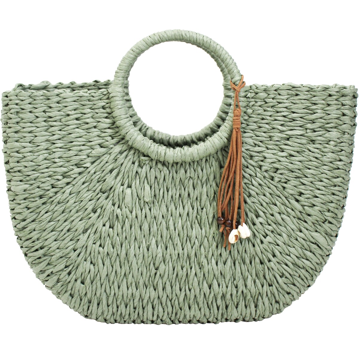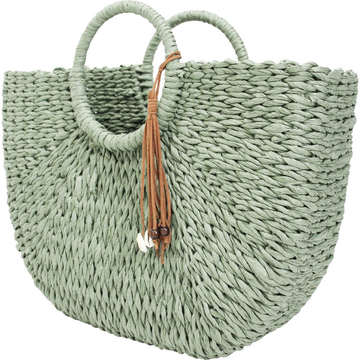 When you need to have that bag which can fit in all the extra shopping or can make you r day long outing super comfy by carrying all that you need, you know that you have found a super accessory. Makes a subtle statement with its soft green colour and the tassel detail adds beaty to its pretty woven looks. Made from light weight rice paper, which is sustainable and is a material known to be hardy and durable without being too heavy for carrying. The bag is 44 cm in length and 36 cm in height making it compact enough yet spacious. The curved handles are easy to grip and the shape has been given a flat kind of base making t possible for the bag to be placed upright on flat surfaces.