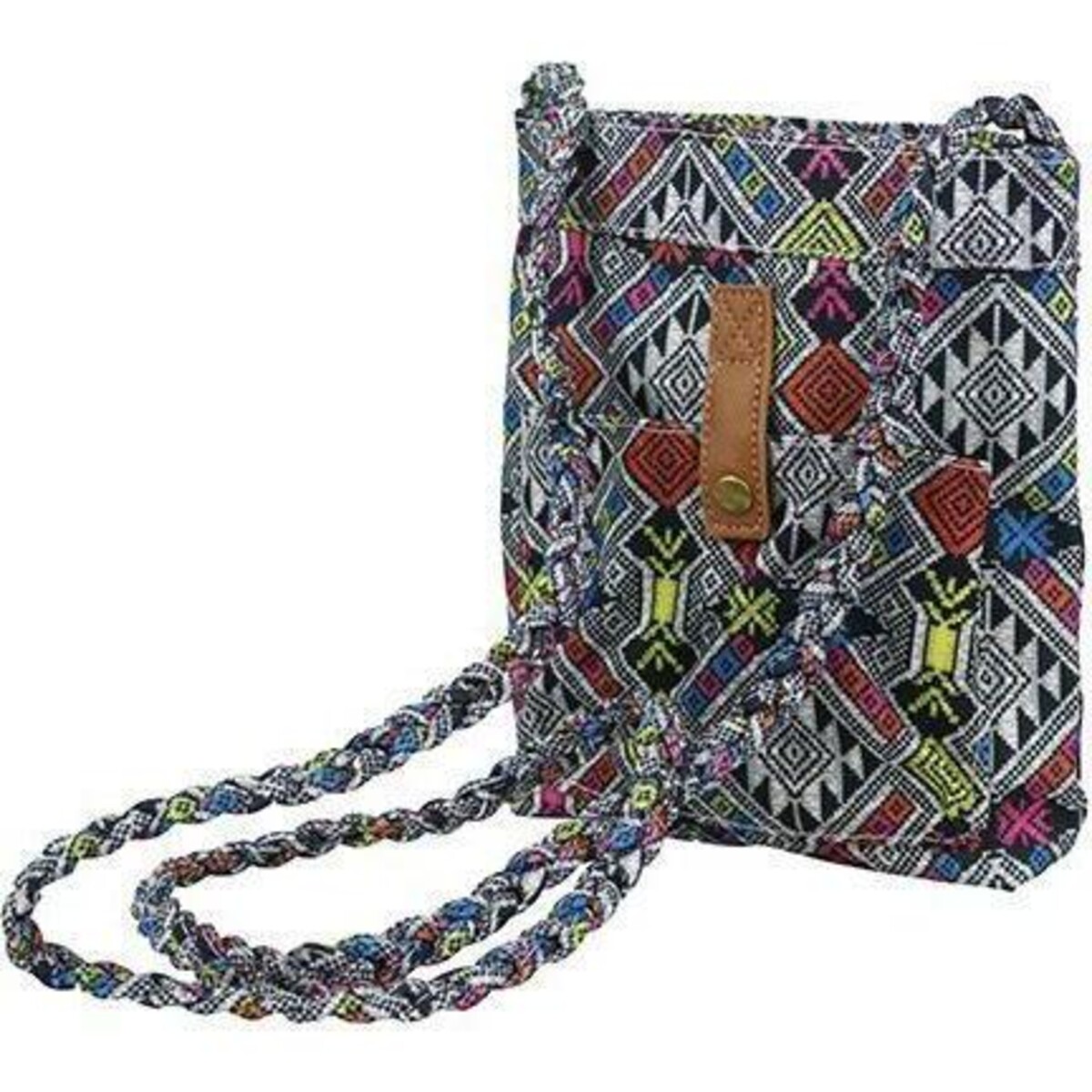 Sling bags need to be lightweight and sturdy enough to carry a lot of things that you may wish to yet look compact and not as bulky as the usual hobo. This 24 cm high and 21 cm wide bag comes with sleekness that is attributed to the manner in which it has been given a very smart proportion that even longish articles that you may wish to carry in the bag could be accommodated easily. The strap is the braided kind and adds that lovely detailing which sets its look apart. The colourful tribal inspired design is age old and has never quite lots its popularity, working as it does to create the more bohemian appeal in the appearance. The lovely sling bag has a long enough strap to be taken cross bodied as well. The bag has a zipper closure that is neatly concealed and the front has a little pocket that closes with a tiny leatherette strap. Has adequate space to carry all your most essential belongings, be it makeup, keys, currency, and the like.