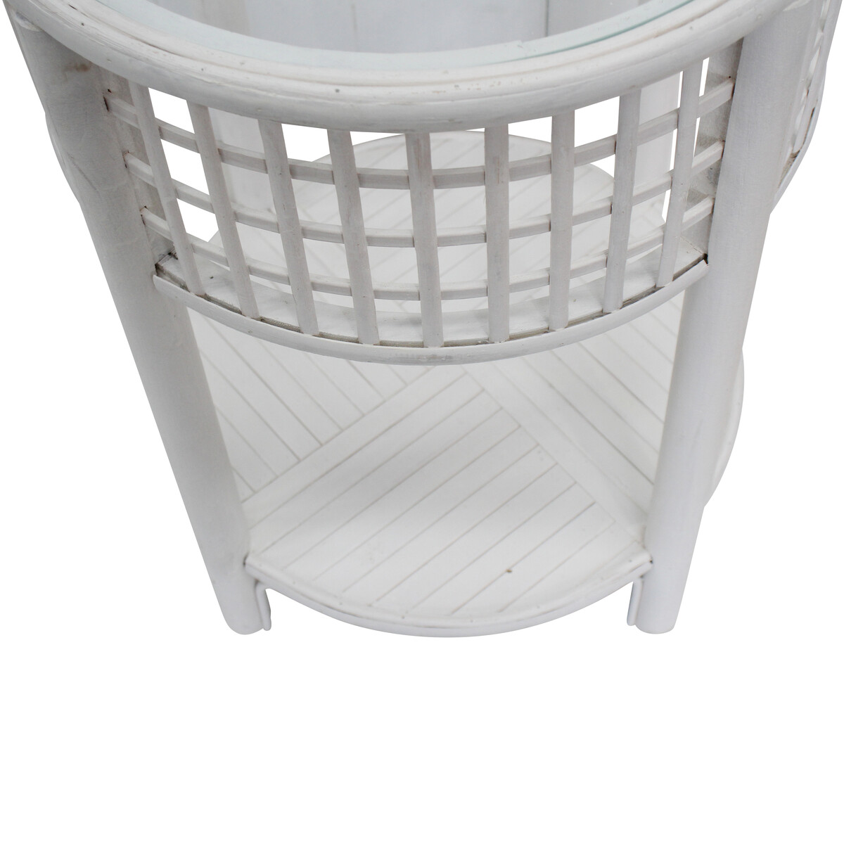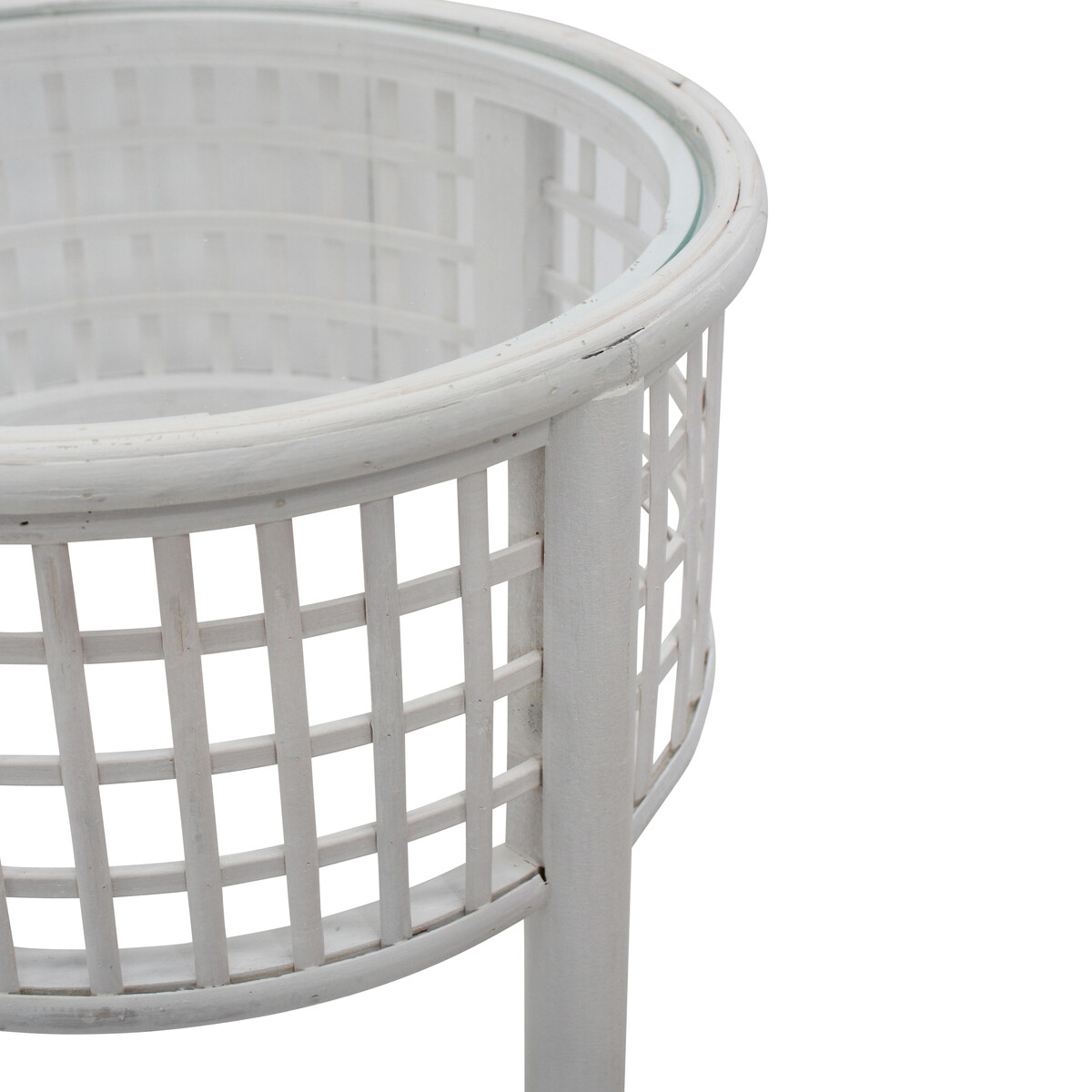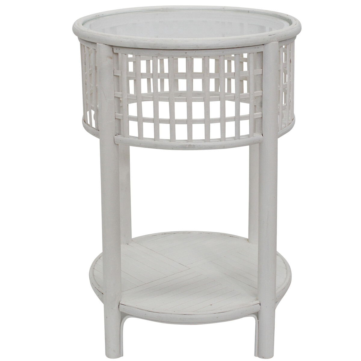 The washed in white look is rather refreshing and very coastal in its appeal. The round shape allows it to blend in and yet its mirror and glass inner detail lends it that necessary quirk to set it apart from the rest. Created by expert designers that work on minimalistic look that pervades most preferences for home setting today, it will lend your shabby chic home or one based on vintage or classic feel setting, that necessary emphasis. You could easily top its glass made round top with a lamp or a tiny pothos in a vase to complement its fresh kind of look. Will easily fit into interiors as much as with exterior garden spaces with ease. Sturdy built easy to lift and shift - it's the kind of all - purpose table that any home can do with. Stands on four legs that give its base that is made of a round platform, that could be used for keeping books and the likes, that necessary elevation to keep things neater and dust free.