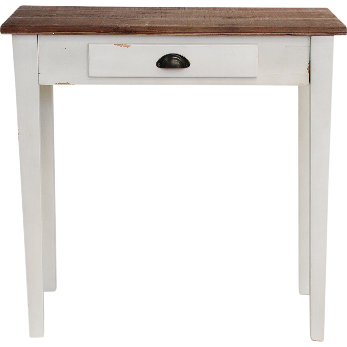 Discover the Side Table Benson, a stylish and functional addition to any retail collection. Measuring 82x35x75 cm, this piece boasts a charming two-tone colour scheme with a robust ' material construction, ensuring durability and elegance. Retailers will delight their customers with this versatile table, perfect for enhancing any room with its practical storage drawer and chic, rustic appeal.