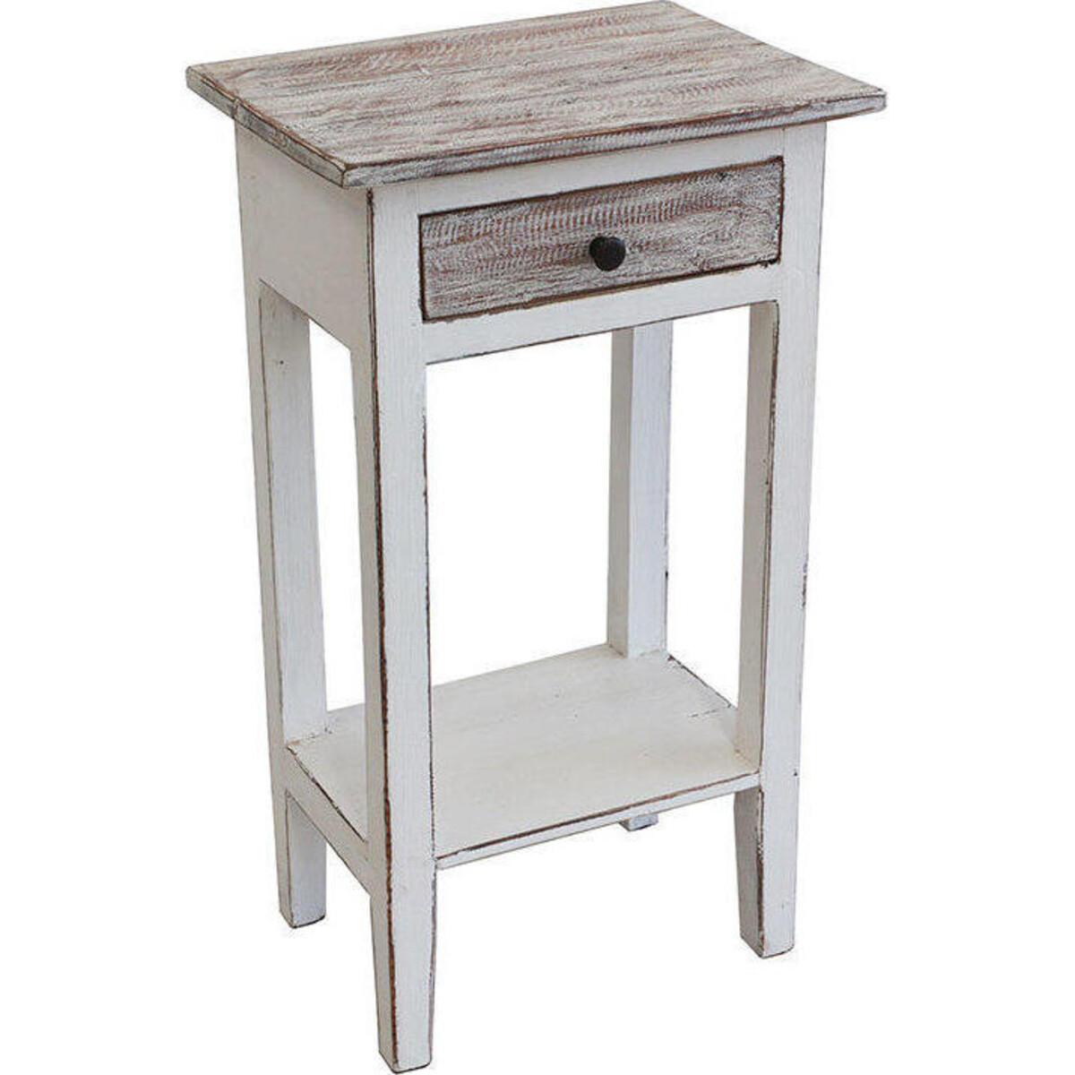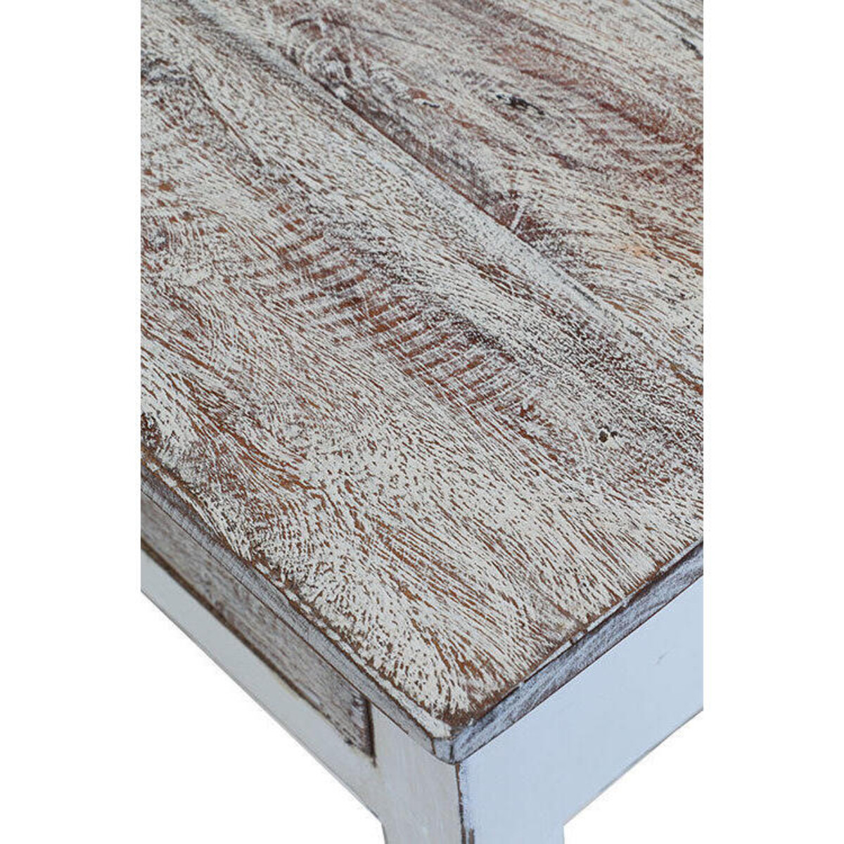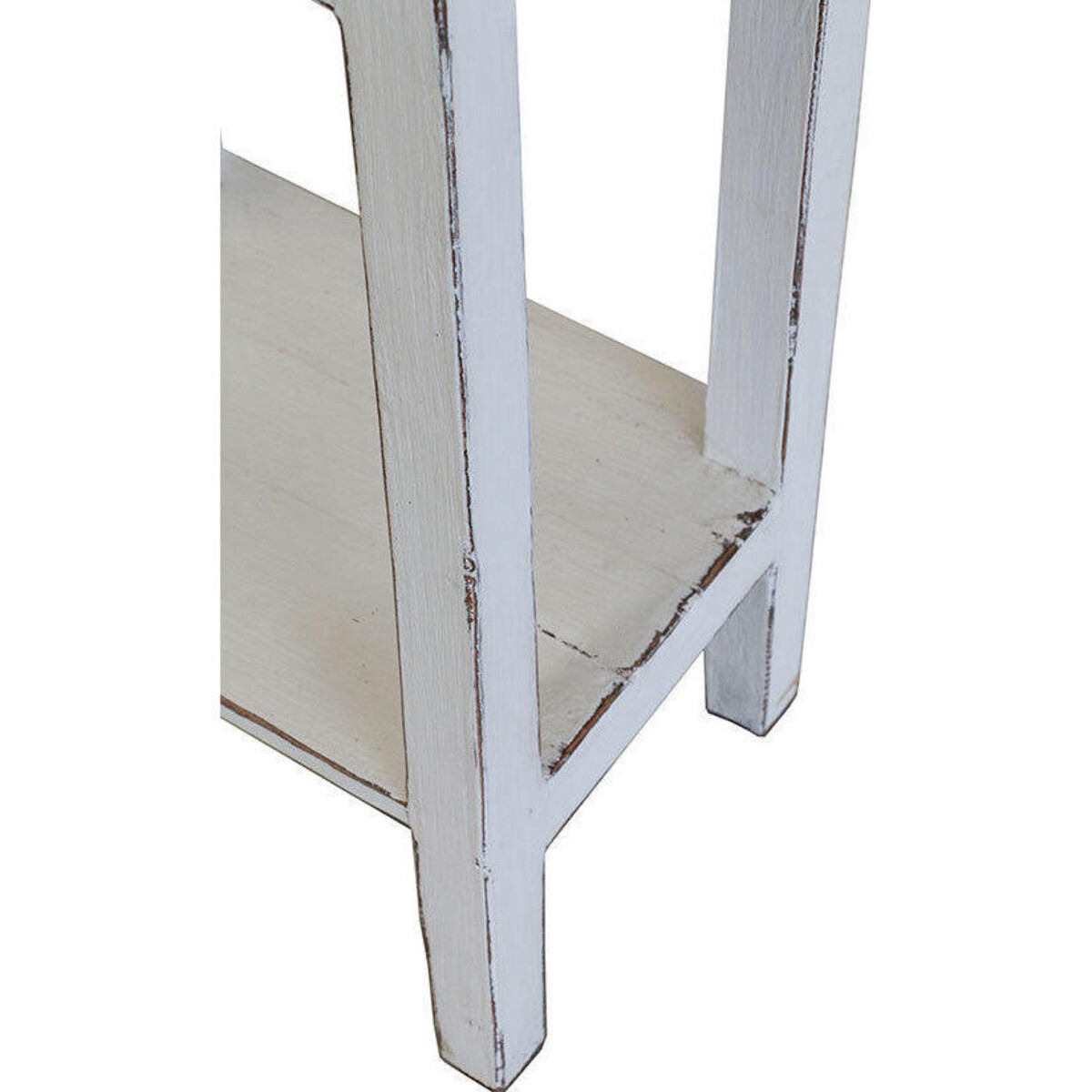 Modern homes have got more experimental with the kind of look they wish to sport and while wooden furniture have undergone a whole stylistic change certain looks of vintage classic will never quite leave-such as the look of solid mahogany furniture that has been given a rough and ready look in white paint-quite unfinished and very rough in its exterior looks. The table top has rubbed paint effect as do the legs whose edges show the wear and age. The solid structure is about 70 cm tall and 40 cm in length while its width is 30 cm making it a perfect little table to prop up a lamp or have it in any part of the house to add an extra layer of décor. Could be used on the bedside, right next to the main setting area and when guests arrive and you need to create that extra table space such tables come in real handy. Place lamps, family pics or use it in the guest washroom to add the fancy soaps, towels and the lot- and you will see its rugged good looks add a whole new feel to the space.
