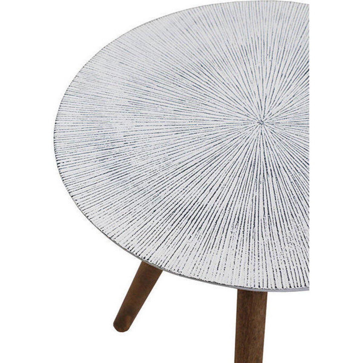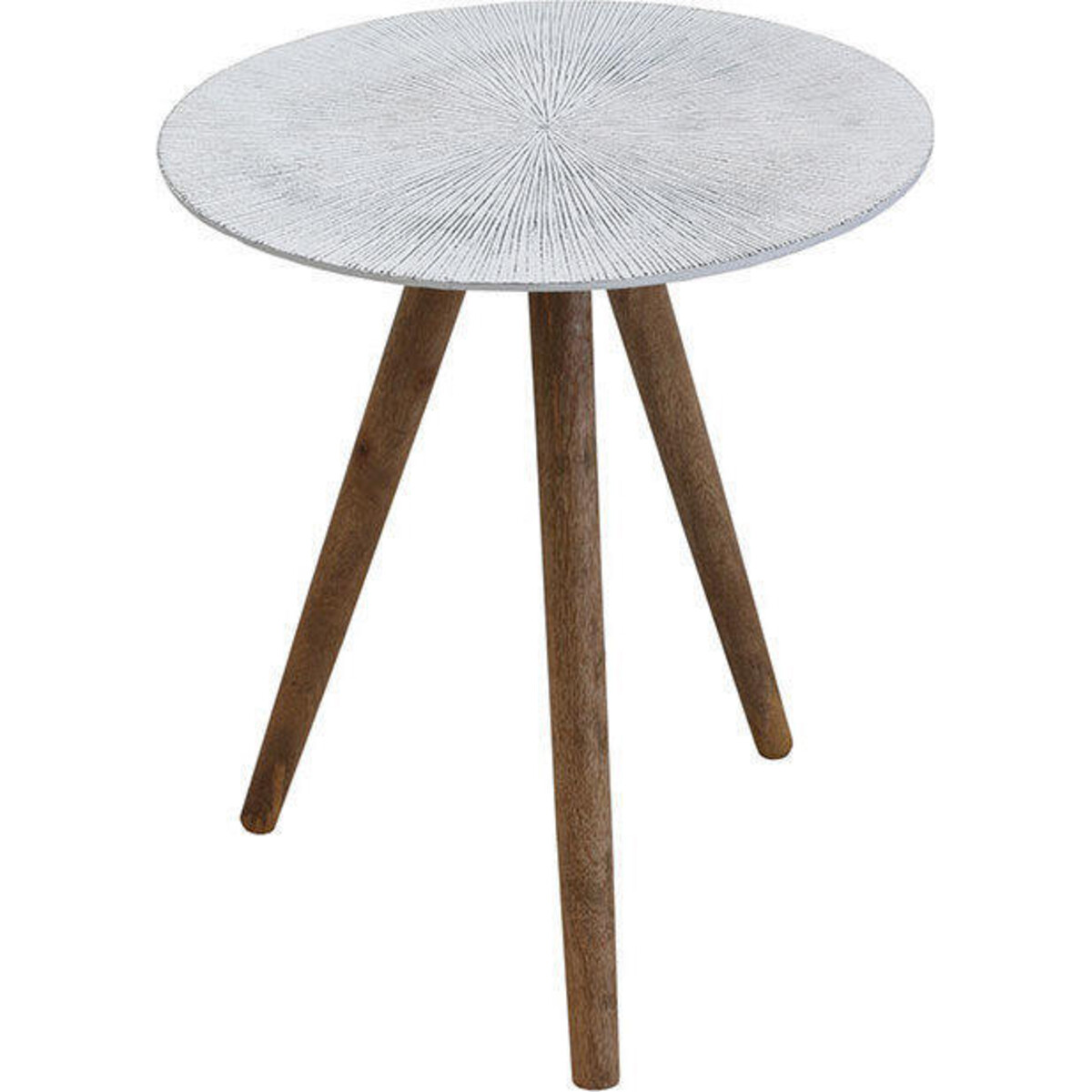 The means to help your spaces get utilized well is by creating small little sitting spaces that need tables and filling in are these truly versatile tables from Lavida that have been created keeping in mind the look that modern homes are trying to create-stark, tough, utilitarian, yet featuring designs that are brilliant -as in this case too. This table has three legs clubbed in tripod slanting style featuring a table top with silver metal sheen and markings right across its surface. This rugged appeal makes it count towards creating that special look and appeal that will set your décor apart. Add it to your corners for displays, or create a much-needed coffee space-or simply take it outdoors when there is need for more table top spaces-in all of these usages it will prove its sturdiness, spaciousness and stability. The side table Expo has a table top that is made from thick metal sheet, solid and trustworthy-that will retain its look despite much usage. The circumference of the top is 42 cm making it most suitable for all kinds of usages-be it for propping up a table lamp, or for displaying artifacts. Take it to the outdoors and create a lovely seating there around this table-you will be stunned at the manner in which wit will enable just the right seating you would have wanted.