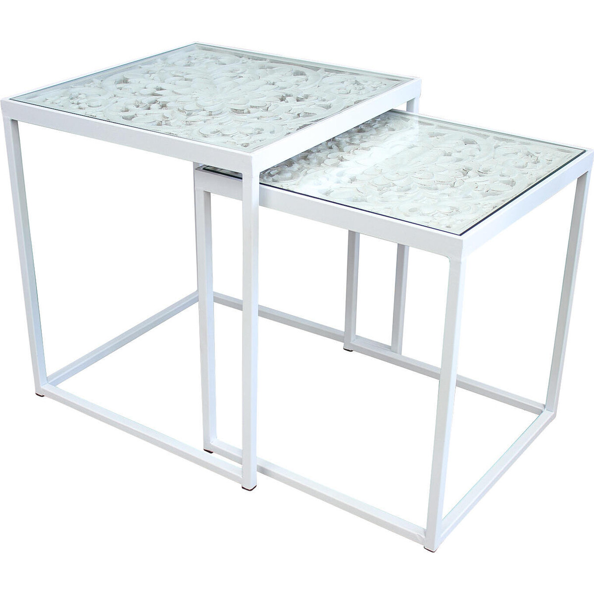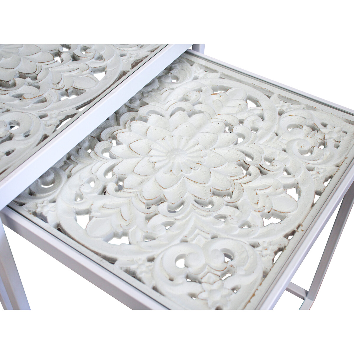 Side Table White Carve S/2