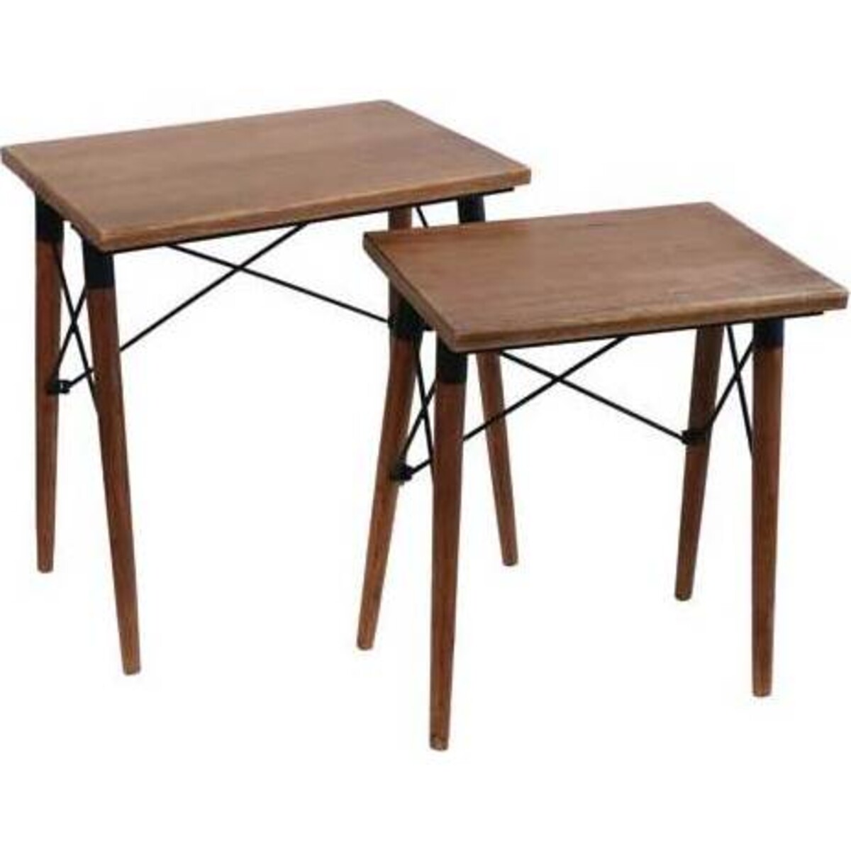 Created from a sturdy design idea - that rests its faith on metal and wood, this set of two side tables will help not just display your additional décor items well but also keep plates, glasses, remote controls, books and all sorts of things that seem to be making other tables too cluttered. Beings a size that can be moved around and placed in smaller spaces, they work wonderfully, adding that convenience for you. The tables come with poplar wood table tops and thin elegant legs that will not cramp the available space yet make its presence known with additional table space that are key to making dining spaces and living room spaces more well balanced and layered. Sturdily supported by metal angles, the tables will look and add understated accent to you home in so many different spaces where you wish to place them.
