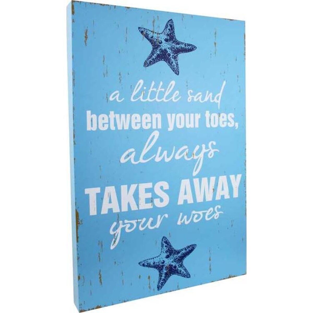 Whether you were lucky enough to grow up near the beach, visited it for summer holidays, or have only been to it once or twice in your life, everyone can agree that the sound, smell and feel of the seaside are among the most blissful your senses can experience. Nothing says relaxation quite like burying your toes in the sand and feeling the sun on your face. This lovely, rustic sign, painted in the calming colour of sea-blue and decorated with starfish will bring that feeling to life and have your customers’ thoughts instantly transported back to happy memories. At 30 x 48 cm, it can be hung on a wall or placed on a shelf or table. Wherever it is placed it will draw the eye and evoke images of beautiful summer skies and the cool beach sand beneath your feet.