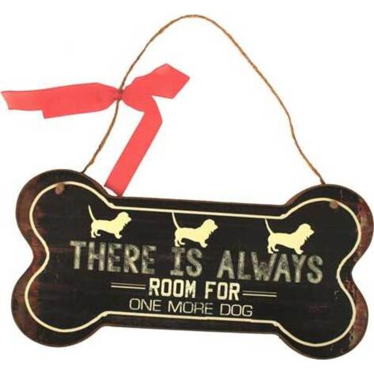 These horizontal dog bone shaped brown signs feature the wording, "There is always room for one more dog," in cream - coloured print, as well as a matching border near the edge. The finishing touches are the three little dog images at the top of the sign and a red ribbon tied into a bow on the hanger. These signs are ideal to display in an animal shelter or even right in your home where you'll see it on a daily basis. They're also fabulous gifts to any friend you know who has a soft spot for dogs.