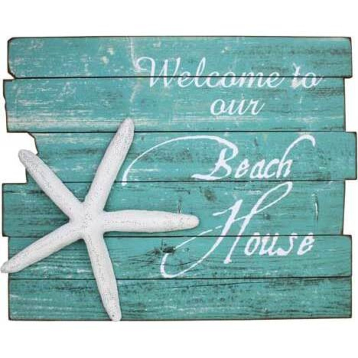 Introducing the Beach House Sign from Lavida, a fabulous decorative accent you're not going to want to be without. These wooden signs are comprised of six horizontal pieces that are artfully arranged and feature a weathered blue background. The final touches are the large white starfish and the white wording that reads, "Welcome to Our Beach House." These signs will make a lovely addition to your front or back porch, or can even be placed in your home as a charming greeting to all those who enter.