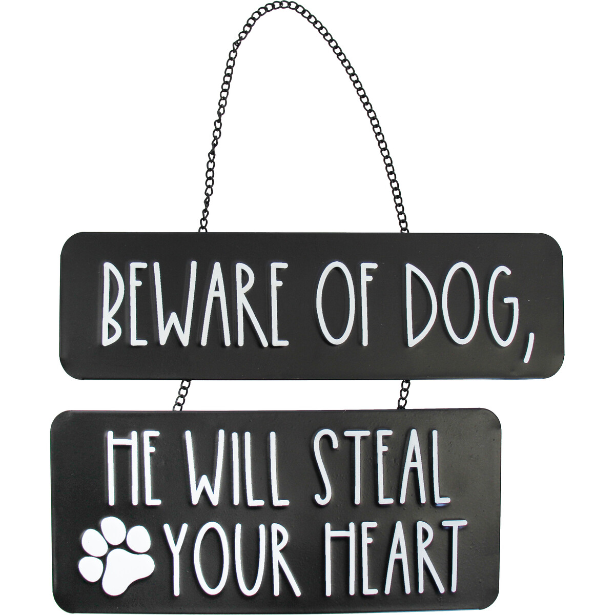 The tail never stops wagging - if there ever was the friendliest dog, you seem to have it! This heart stealer is sure to be the focus of attention if anyone comes calling- so why not warn them. A simple sign board which passes on the same message to anyone who knocks at your door. It is bound to bring on a smile that will keep growing broader, especially when they see your pet. Made of wood the sign board is in two planks that are interconnected with a chain that allows it to be hung easily. In a dull black colour, which looks even more attractive because of the print in in white. The paw prints add more beauty to the message on it with simply says- Beware of Dog- he will steal your heart! Instantly brings a smile on your face with its cheerful message.