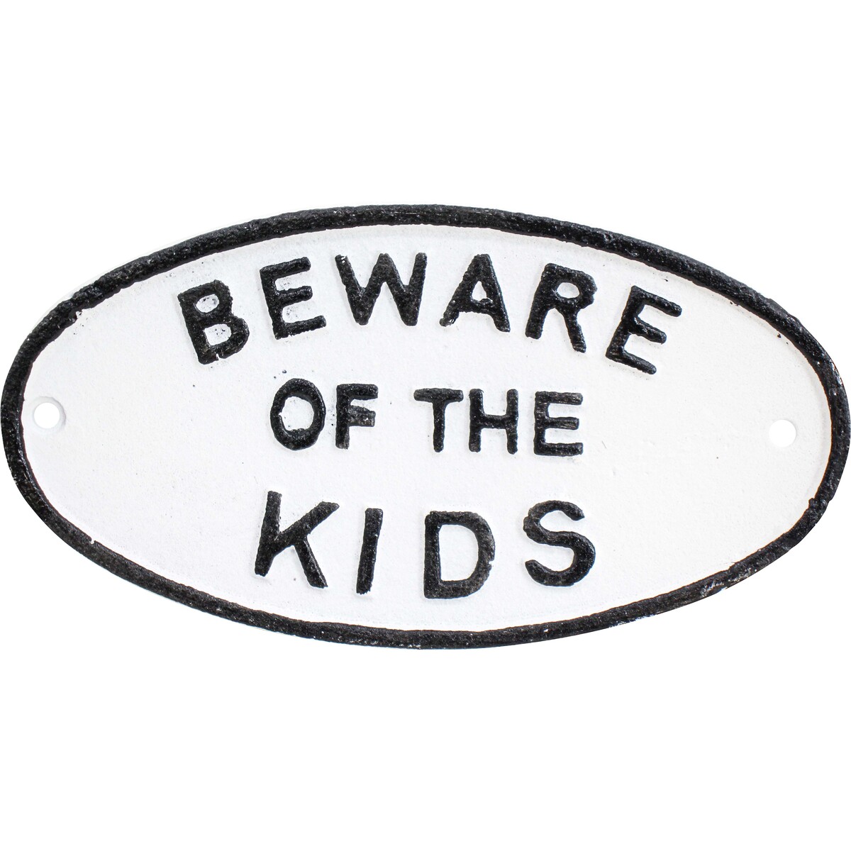 We find that the right piece of wall art can transform the mood of a room and make it more welcoming, and in this case, add a dash of mischief and fun. This 'Sign Beware Kids' wall sign is the perfect conversation starter for families with children or even daycare centres looking for something playful to add to their walls. Painted white with a black rim and engraved text in an equally dark hue, this funny sign is ideal for even offices and homes with children.
