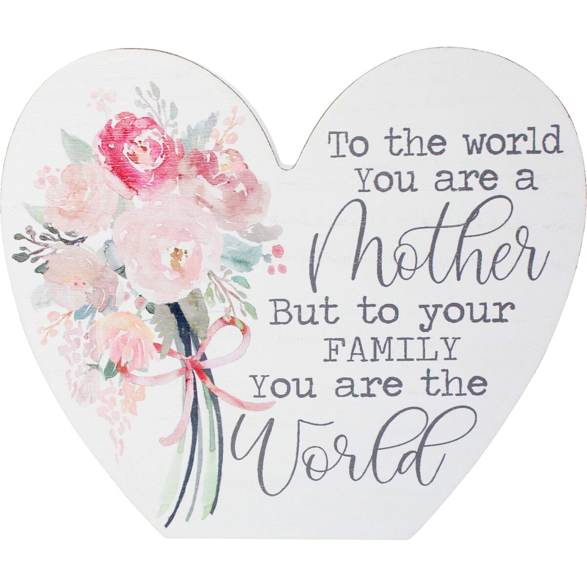 With its elegant colour palette, the Sign Bunch Flowers Mum exudes a gentle sophistication, ensuring it will complement a multitude of decor styles – from the classic countryside to modern minimalism. The sentimental expression “To the world you are a Mother, But to your FAMILY you are the World” is beautifully scripted across the heart, serving as a constant reminder of a family's love and the pivotal role a mother plays.