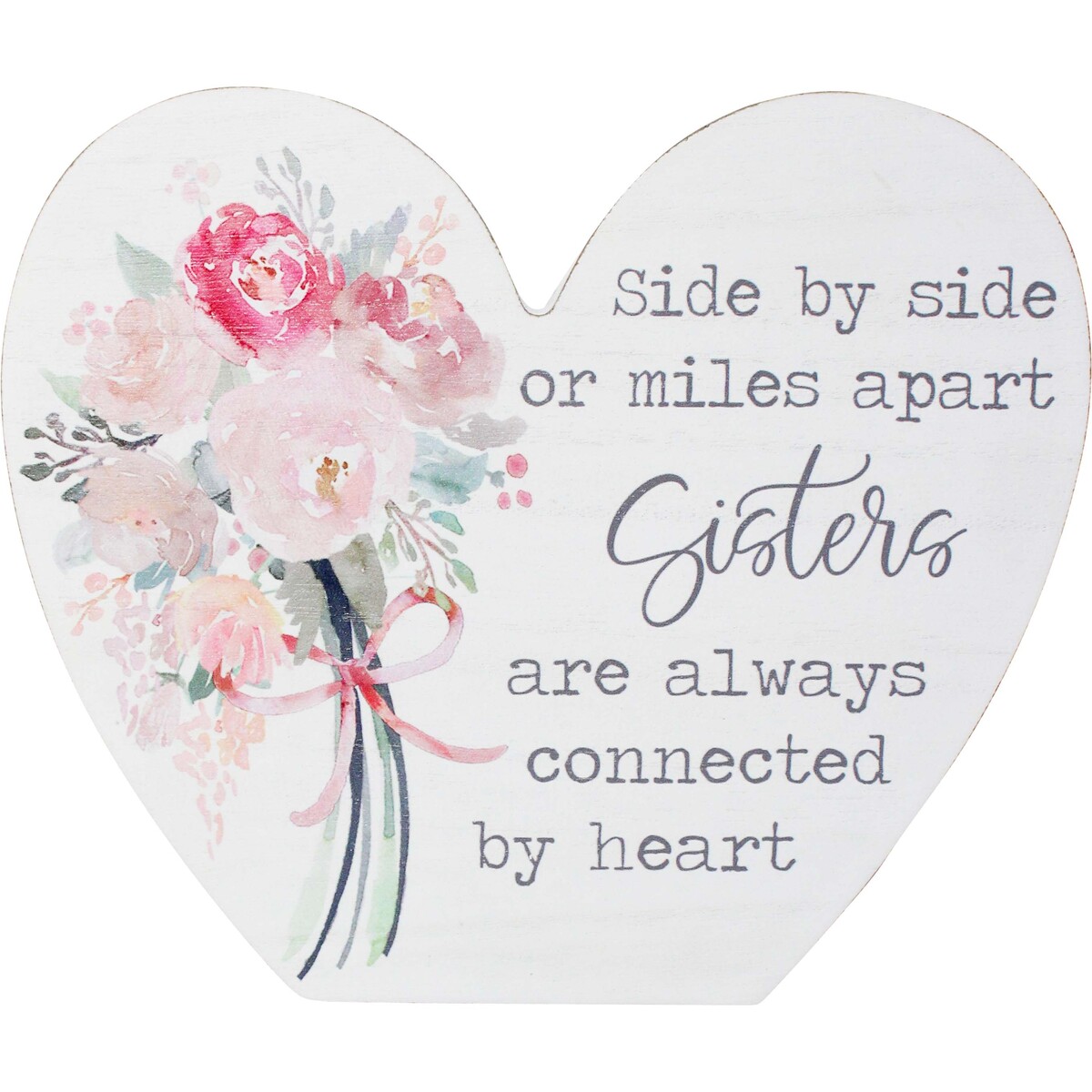 Discover the Sign Bunch Flowers Sisters, an exquisite piece that embodies the unbreakable bond between siblings. This charming decor item, measuring 20x4x17cm, showcases a heartwarming message "Side by side or miles apart, Sisters are always connected by heart" amidst a backdrop of delicate floral artistry. Its soft colour palette is versatile, easily integrating into a variety of decor styles, from the minimalist office to the rustic home environment.