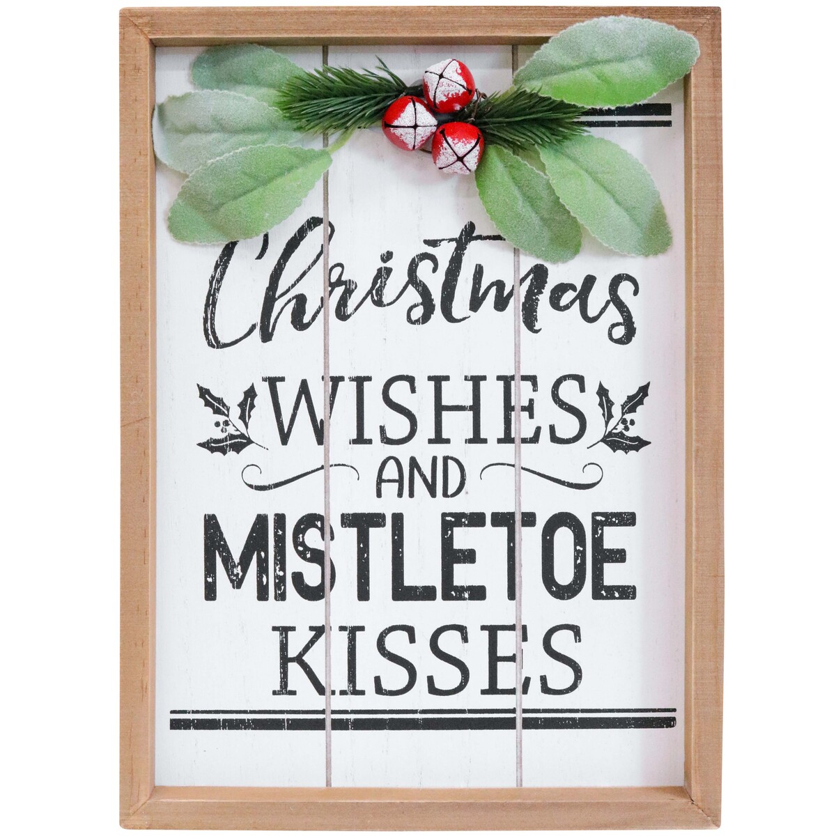 We love how this Christmas Wishes sign combines a modern farmhouse style with a festive touch of artificial mistletoe and red jingle bells. The simple whitewashed background and the black block lettering create a warm, rustic feel. Plus, it's just the right size - 22x2x30cm - to fit perfectly on a wall or mantle in any home.