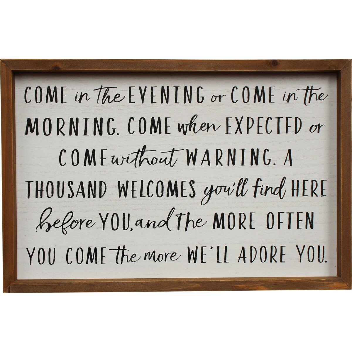 Making the bed before the guest arrives, keeping everywhere and everything clean, disinfecting toilet and bathroom wares, displaying fresh flowers and making food and water available are practical behaviours of making guests feel at home which is already emphasized with this quote frame. The importance of welcoming can't be overstated. This sign tells the guests that you and your family are enthusiastic to receive which is a valuable necessity for the relationship to last. Also, one good turn deserves another.