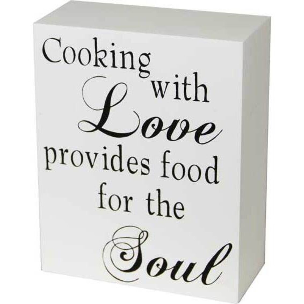 If cooking is the food for the soul - cook on - yes, this is for all those who have spoilt their friends and family with the best in their cooking talent. Love can be displayed in a variety of ways and one prominent way is by cooking for your friends and family. So if you have had an aunt who used her culinary skill to show her love, or a grandmother who could not keep out of the kitchen when you visited her - this would be the gift for the one who has always looked after your gastronomic needs to the fullest. Make this your impassioned declaration of why you feel cooking with your complete heart and soul has been the way you have looked after your closest friends. This would make a cheerful and loving display in all those homes where breaking the bread with friends and folks is the way love is interpreted .The freestanding sign board is about 13 cm tall and 10 cm wide and is in white with a black font that looks truly classic and ornate. Grace your home with the lovely hint of love through the stomach route.