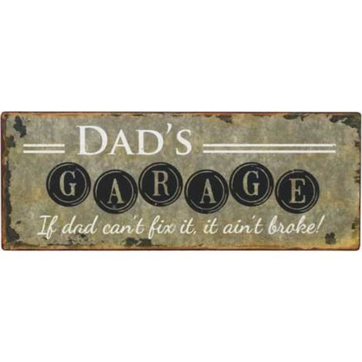 A tribute to a loving and doting Dad albeit with a twist. The metaphor of a garage fits with the rustic beauty of this tin sign board that is about 46 cm in length and 18 cm in width, making it look wonderful on nay wall. The print is very vintage as is the look of the tin sign and the words that shows the eternal optimism of having Dad to take care of things always comes right through - ‘If Dad can’t fix it, it ain’t broke’ - the feeling of complete faith in Dad’s ever caring presence is what comes right through. A fun tin sign that can express the adulation and the love one feels for family. The rusting edges, the dull paint effect and the lettering - all of this works wonderfully to create this imagery of vibrance within an antique finish that instantly grabs one’s attention.