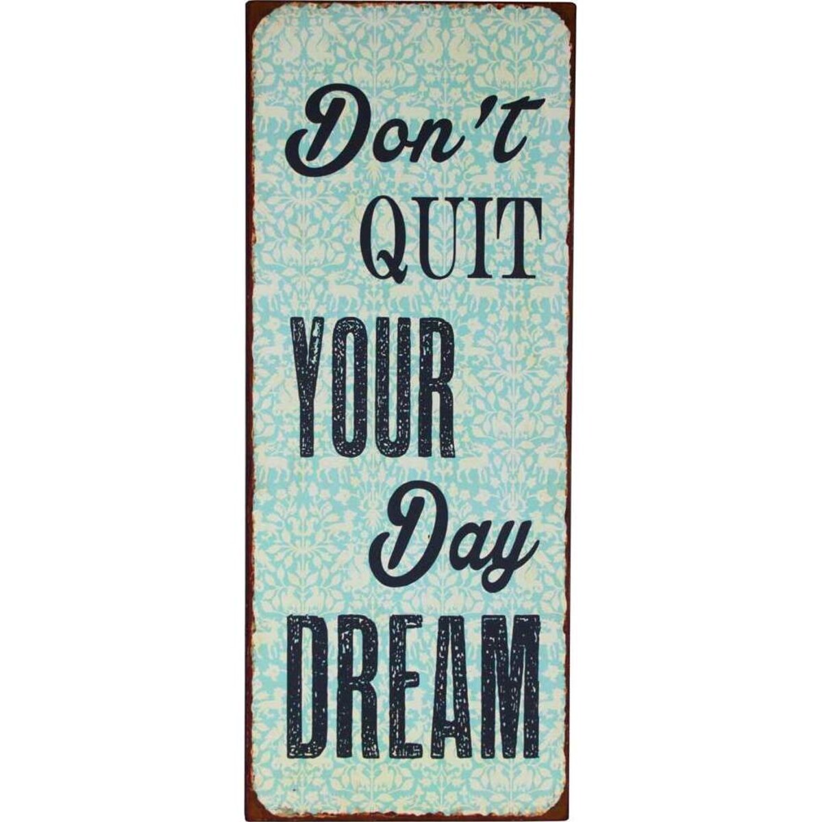 This Day Dream Sign from Lavida pays homage to those who never give up day dreaming regardless of their age. These vertically - hanging signs feature a beautiful light blue and white nature - inspired background, as well as oversized black wording that reads, "Don't Quit Your Day Dream." The edges of the metal signs are worn to give them an aged appearance, as if they've been used as the inspiration for many for several years. They'll add a lovely touch of colour wherever they're placed. Put these signs around your own home, or pass them along to those who could use some inspiration to do a little more day dreaming themselves.