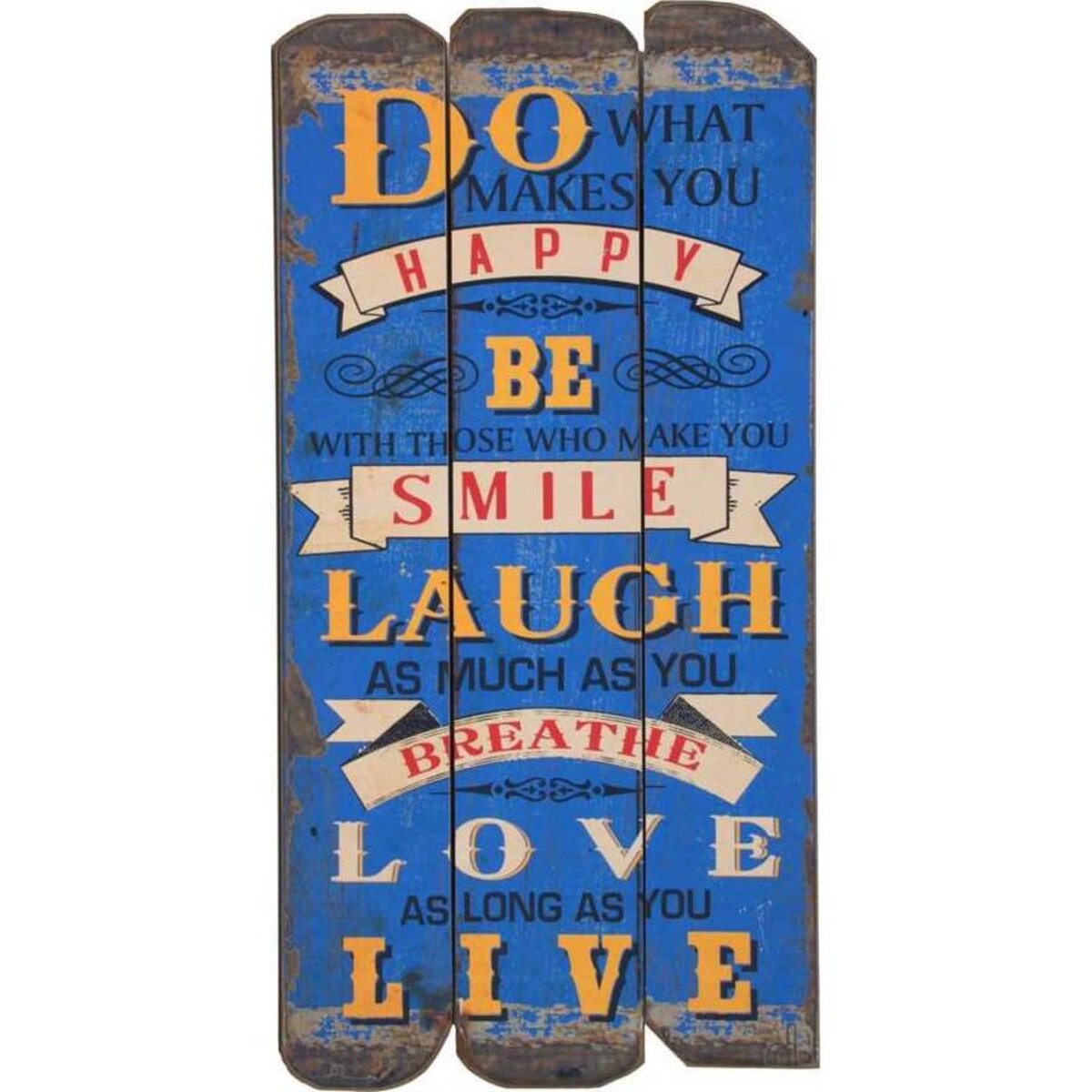 • The words "Happy", "Smile", and "Breathe" are done in red on white banners, and the sign reads, "Do what makes you happy. Be with those who make you smile. Laugh as much as you breathe. Love as long as you live." Words are done in red, yellow, and black lettering using varying fonts. It's a sentiment that each of us would be happy to display.
