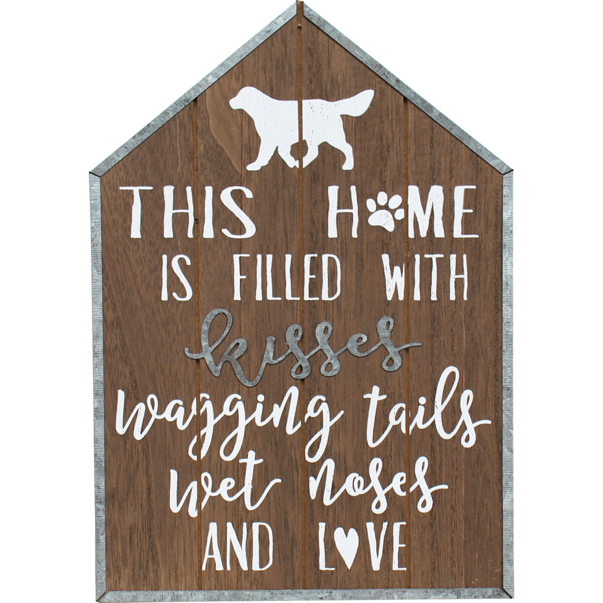 In a colour that mimics the timeless beauty of natural wood, this piece captures the essence of a loving home. It celebrates the joyful presence of canine companions with its sweet message "This home is filled with kisses, wagging tails, wet noses, and love," which resonates with pet owners and animal lovers. Its elegant white script against the rustic backdrop allows it to seamlessly complement both contemporary and traditional decor.