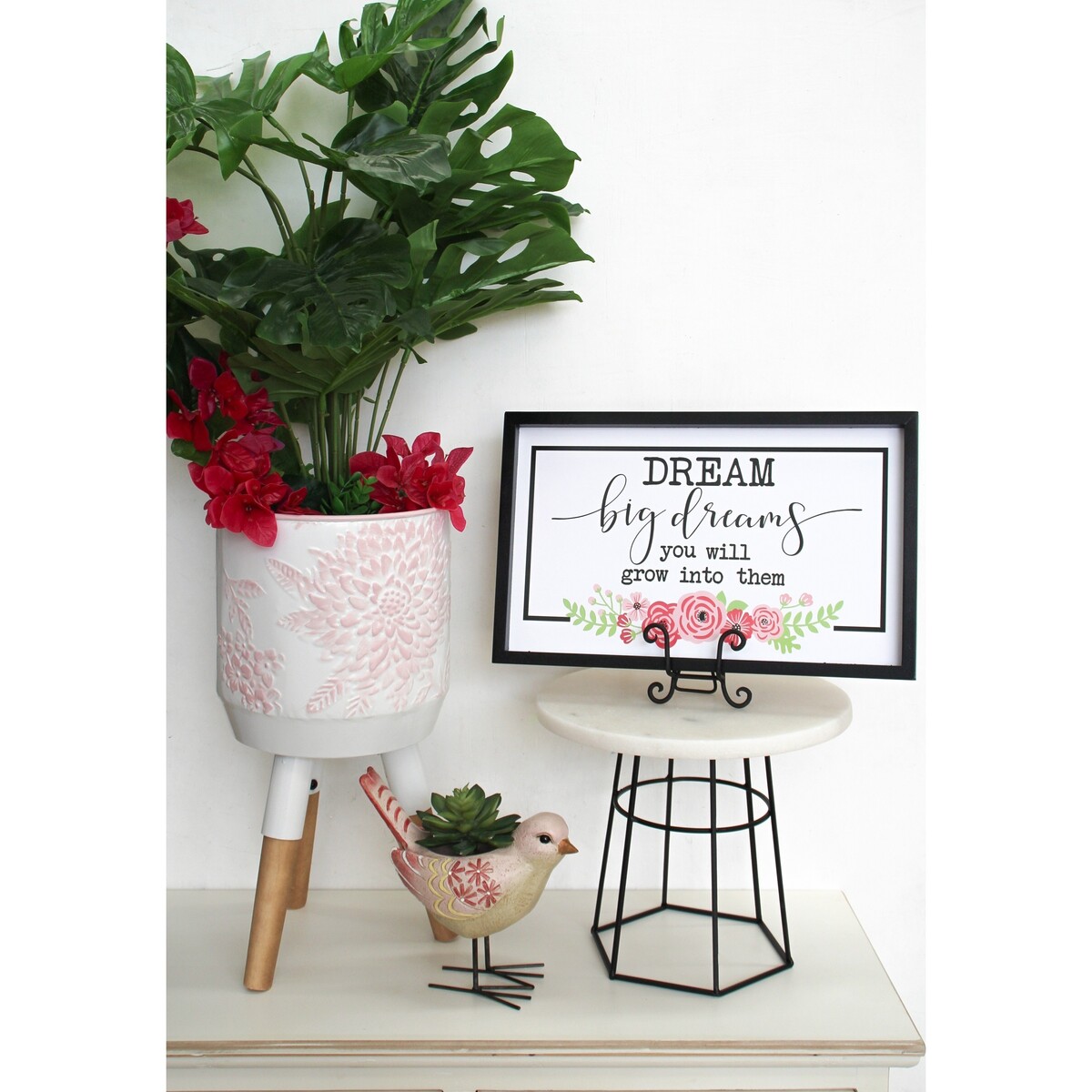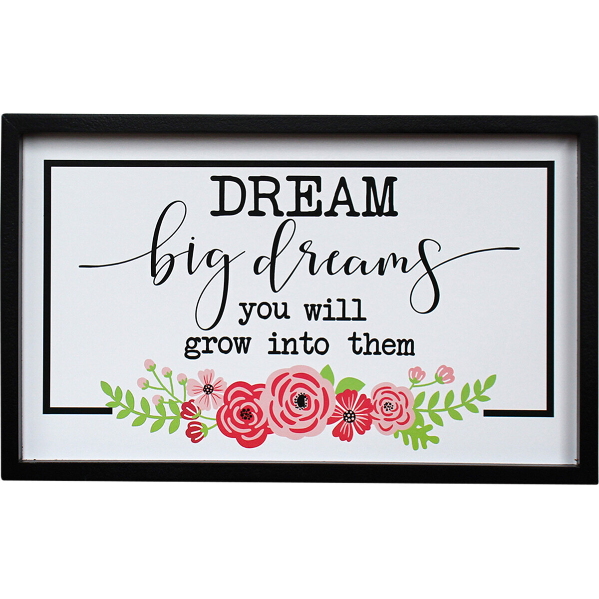 Custom cut medium density fibreboard (MDF) featuring "Dream big dreams, you will grow into them" is an amazing choice for one's personal space and office spaces. It is shown in bold and fun black lettering. It can be hung on walls or can just be placed on the floor to stand on its own.