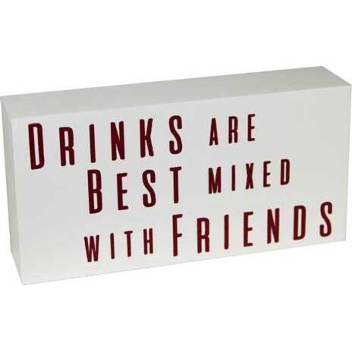 Modern homes love informal accents that are not overly subtle and what can be more subtle yet direct than the sign board that says very simply that the best way to spend the most enjoyable time is with both drinks and fronds. So if your idea of ago time matches the right kind of friends sharing a good bottle of wine - here is the sign board for you to bring home. Entertain your friends in the comfort of space that helps you open up your home and your heart with the help of this sign board that declares how much you care for their company and how you cherish their friendship. The sign board stands at height of a mere 10 cm in height and has width of 20 cm on which is printed the all important message on a stark white backdrop - simply saying - that the best concoction for getting your happiness to a high is with friends. The sign board could be placed in your den, the patio sit out, the little space that you have recently set up or the living room where you generally relax with the best of company. Add this touch of informal flair in your decor for a little twist of modernity.