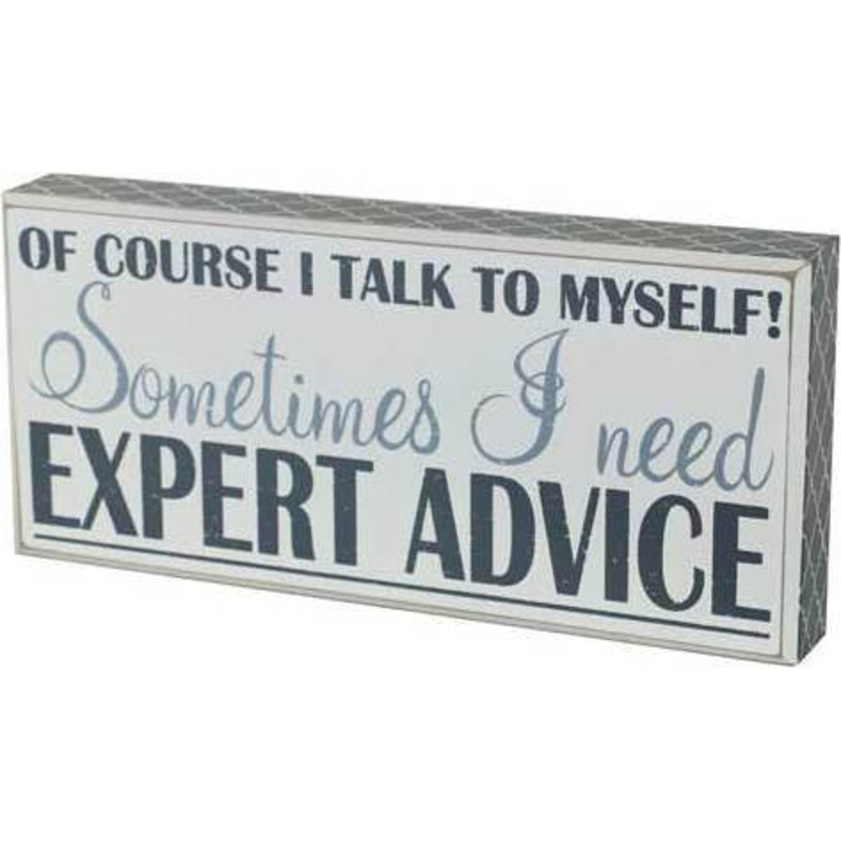 Comprised of MDF, these horizontal signs are off-white in colour with two shades of grey print that read "Of course I talk to myself! Sometimes I need expert advice!" Thanks to their colouring, they can complement a variety of rooms and colour schemes. Put them in your living room, on your desk at work, in your bedroom, or anywhere else you need a daily reminder that sometimes, the best voice you can listen to is your own. Their slim structure allows them to easily stand on a variety of surfaces from a desk to a mantel.