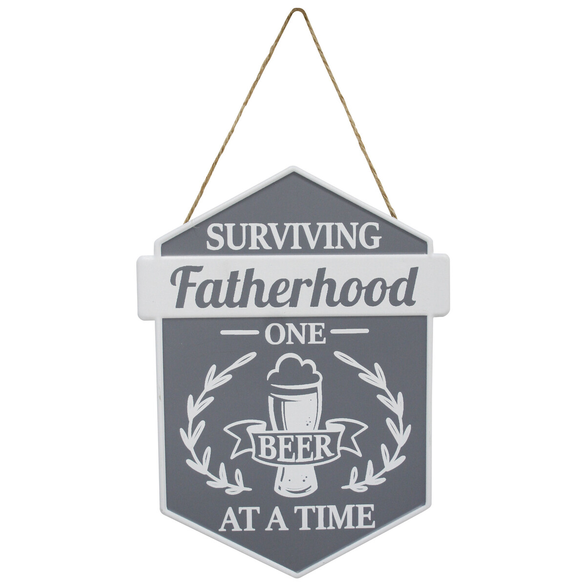 Celebrating the journey of fatherhood, this sign features a clever play on words with the phrase "SURVIVING Fatherhood ONE BEER AT A TIME", elegantly framed by a classic laurel design that accentuates its playful yet stylish vibe. Its light-hearted message resonates with dads everywhere and serves as a delightful conversation starter.