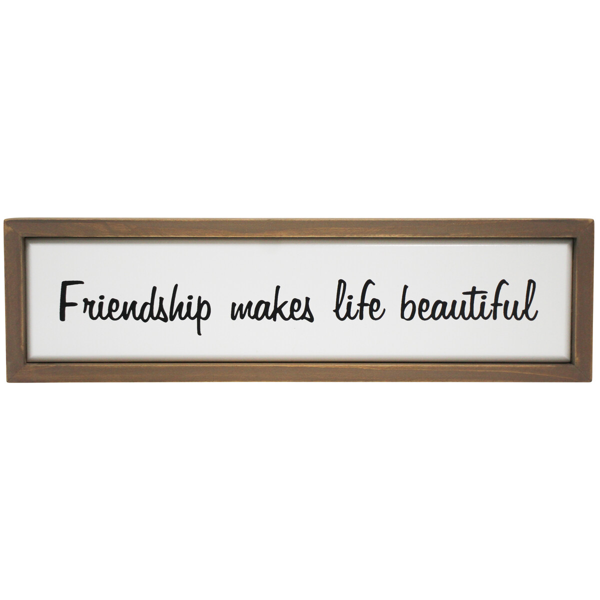 We’ve all had that one moment with a friend when we catch ourselves looking around and thinking, “I’m so grateful to have you.” This sign is really great for those moments when we want our customers to express their gratitude for their friends! With a message on the front that says “Friendship makes life beautiful,” in a handwritten font, this sign is perfect for displaying as a home decor piece. The MDF material gives it a nice brown finish, allowing it to blend into your customer’s home without being an eyesore. It also makes for a great gift from their best friend! And at 30.5x3x8.5cm it fits pretty much everywhere - bedrooms, bathrooms, living rooms, kitchens... The minimalist look means it can be paired with both darker and lighter elements in the space, adding to its versatility. We think it’ll bring warmth and happiness to your customer’s homes!
