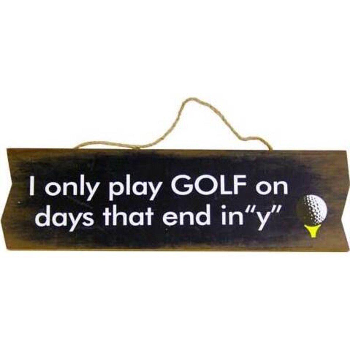 A wooden sign board that honestly declares what a lover of golf would most certainly want to say to the world - I only play golf on days that end with ‘y'. The obese ion with golf is not new and there have been many signboards that have attempted to capture the avidness and the love for this game. This sign board is polished and so very vintage in its appeal. It also has a hand painted look that gives it more charm. It can be hung with a wire that comes with the board that is about 21 cm in length and 12 cm in width. The dark wooden backdrop sets off the proud and prominent lettering of the words .The tongue in cheek humour that every golfer ultimately uses to prove how obsessed they are with the game comes right through. A wonderful gift that can be given to an avid golfer or to anyone testing the waters. Would most certainly will hold a place of pride in any golfer's home.