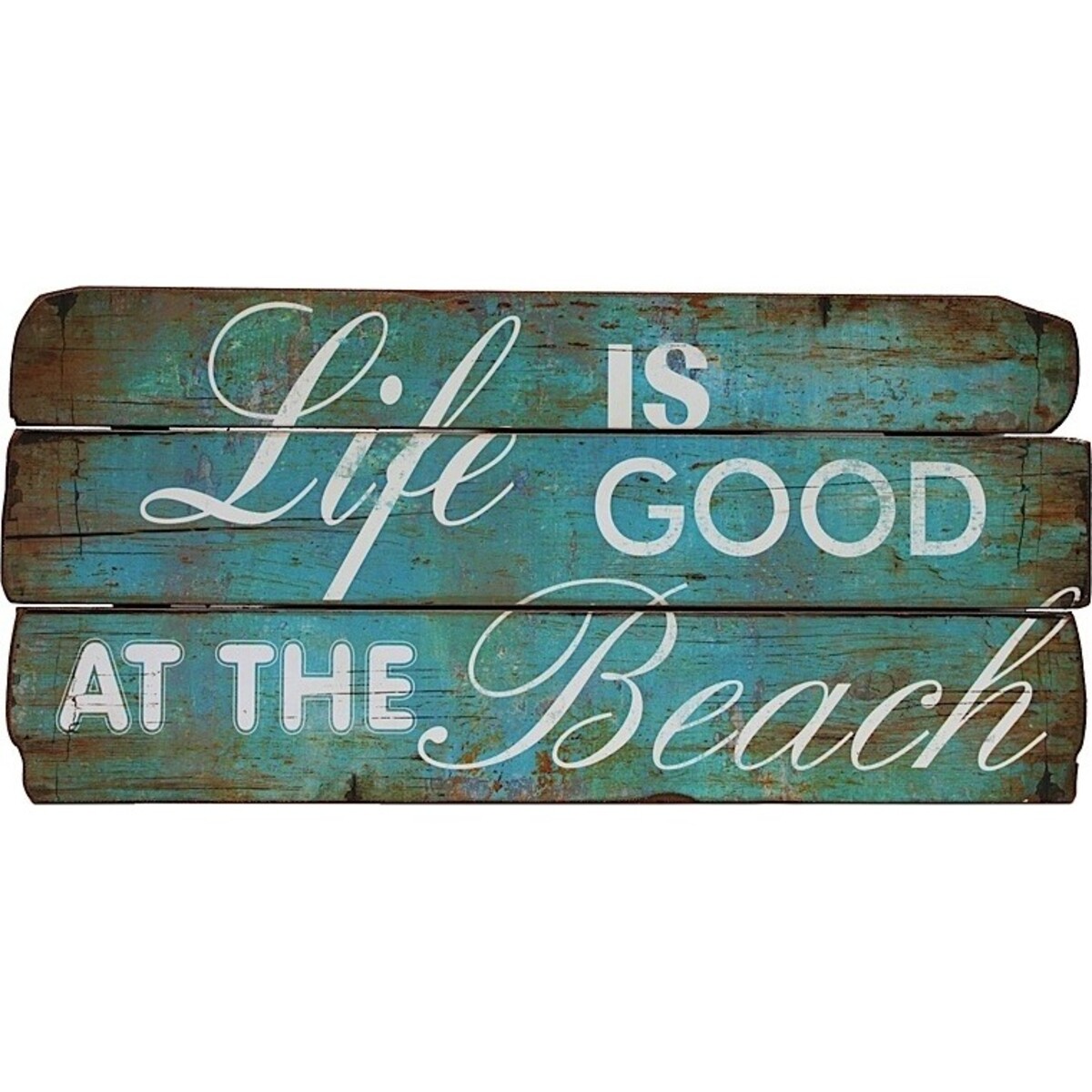 Life is good at the beach with this hand painted sign of weathered drift wood. This sign is perfect for another day in paradise.