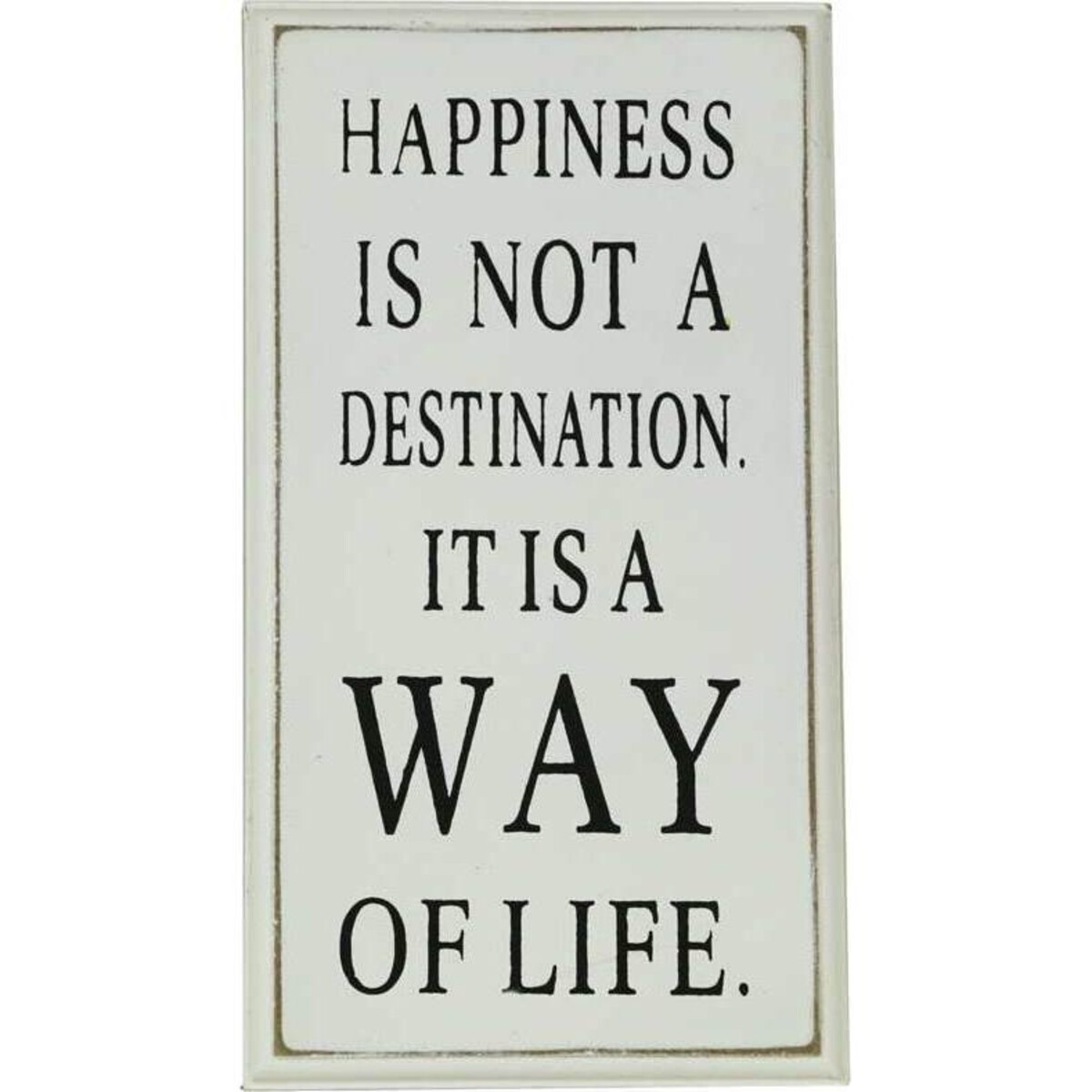 A lovely little sentence that packs in so much meaning is the focus of this sign board that could be sued as much in our homes as in offices and schools or nay such place that could do with a positive uplifting idea. The sign board is made with MDF and is 24 cm long and 14 cm in width and could be propped up on any flat surface with ease. The off white back drop on which the very pleasant black coloured letters are etched makes it profound in its simplistic and so very apt for all places. What interiors lack is this one thing - the energy that drives people to remain happy whatever the circumstances. Present this plaque to someone at housewarming, or to someone who is setting up a new business or has just changed jobs. There can be nothing better than something as uplifting as this plaque that can help cheer up any kind of space. You will also love the rubbed paint effect round the edges that makes it look worked in and shabby.