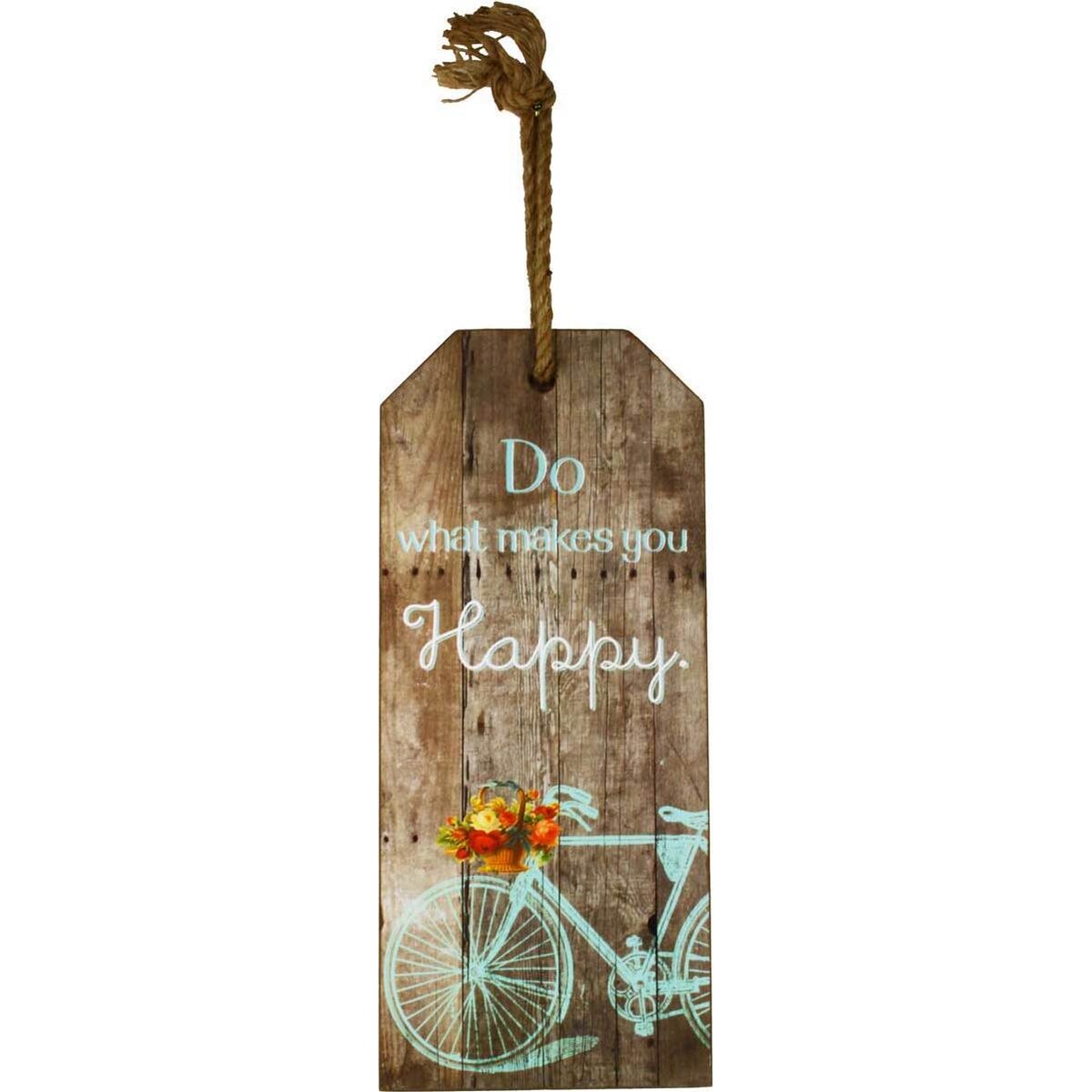 Sign boards are indeed the best way to add the element of thought and idea to any decor and when they come in package as complete as this - This sign board has the rustic charm of wood, the little colour effect of white and a delicate blue in faded sort of way and the graphic of a bicycle that makes it all come together - the message seems all the more clearer - simplicity and the focus on things that are elemental and real is what keeps one happy. A beautiful message put across in manner that befits the content. The wooden sign can be hung from the rope attachment on top and will look as wonderful in outdoors, as it would in doors; perhaps even the entrance of the house. Some things when kept simple makes for the most eloquent and impactful of ideas - this piece most certainly packs that punch, ever so elegantly.