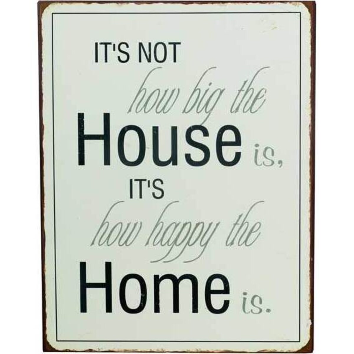 The It's Not How Big The House Is, It's How Happy The Home Is sign is a beautifully-made sign with bold and elegant lettering that will get the attention of your customers as they see them displayed on your store shelves. This kind of sign is the perfect sign to hang anywhere in your customers home and families will be drawn to this sign's saying. The characteristics of the sign will help sell it, the light background and bold letter look great together and the worn look around the edges makes it look antique, which is big right now in the décor industry. This kind of sign sells itself; you just have to buy it for your customers.