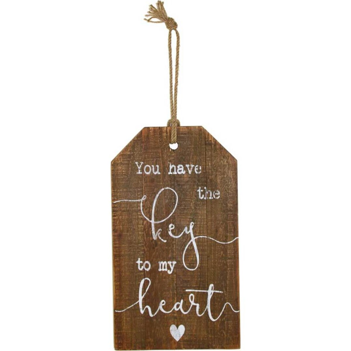 Fabricated from wood and hung simply from a twine, these simple little embellishments are as good for the decor as for the walls. So when the days have been blue reach home to these sign boards that instantly make you feel loved and cared for and uplift the mood. Could be placed on any wall, its 41 cm long and merely 23 cm across making it suitable even for small little niche which is the place where you love to relax and unwind. Use sign boards made of such organic material all across your home and with relevant theme as and see how easily the look of that space will change. The simple words on this plaque is - You hold the key to my heart - written ins simple white scrawl that looks rather attractive across the warm brown of the wood. There is no extra paint or polish across the plaque and the look of the wood has been left in its natural colour tone. The plaque can be hung in any art of the home and can be paired with other shabby chic or antique looks items that have a similar feel.