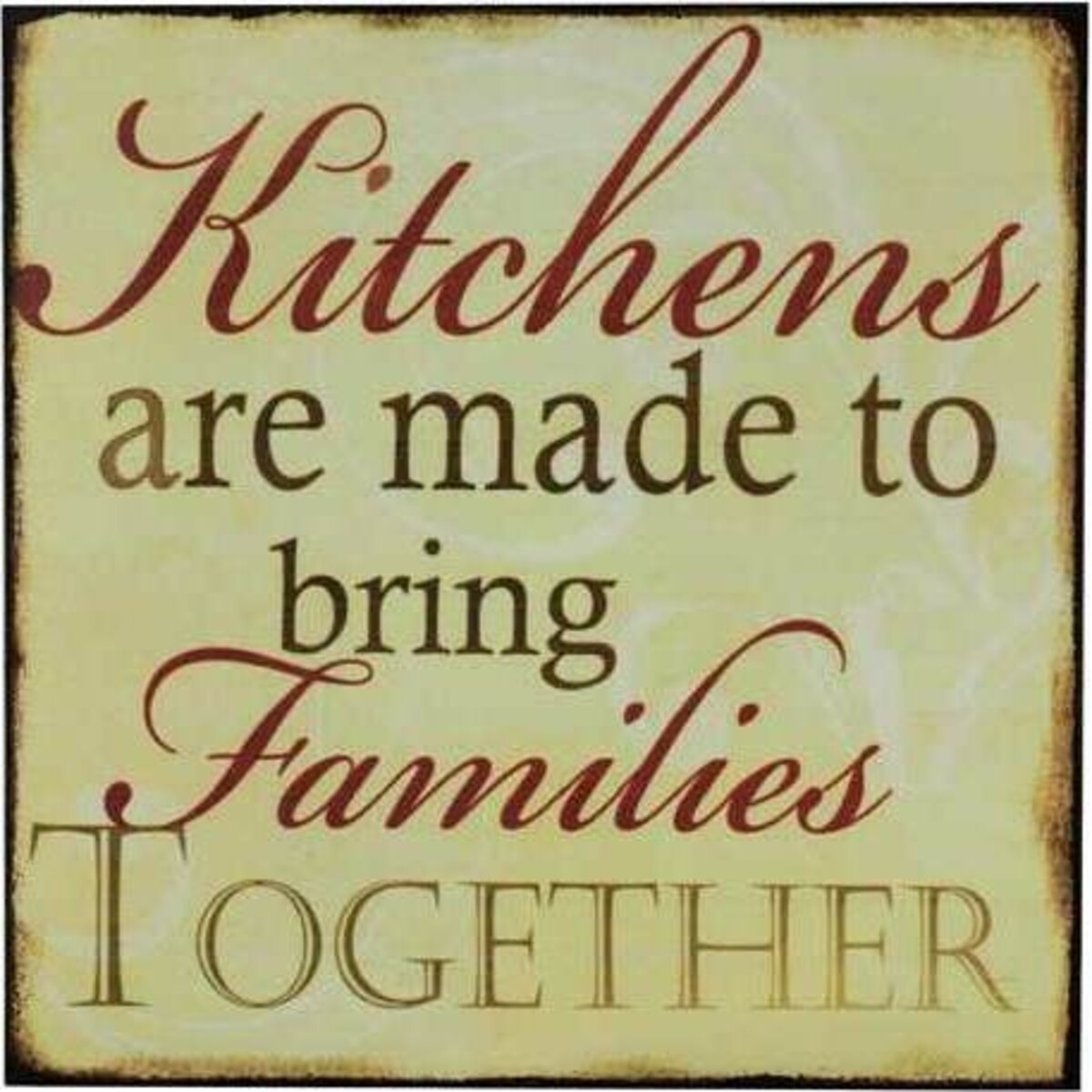 The smoke rising from the skillet as the bacon is fried golden brown, the chatter at the table and feeling of warmth and comfort like no other place can bring-this of course is the kitchen where hungry family members exchange news, views and love- and a sign board befitting this space says-Kitchens Are Made To Bring Families Together-so true as even in the times of such hurry, signs like this tell us of the importance of eating together.