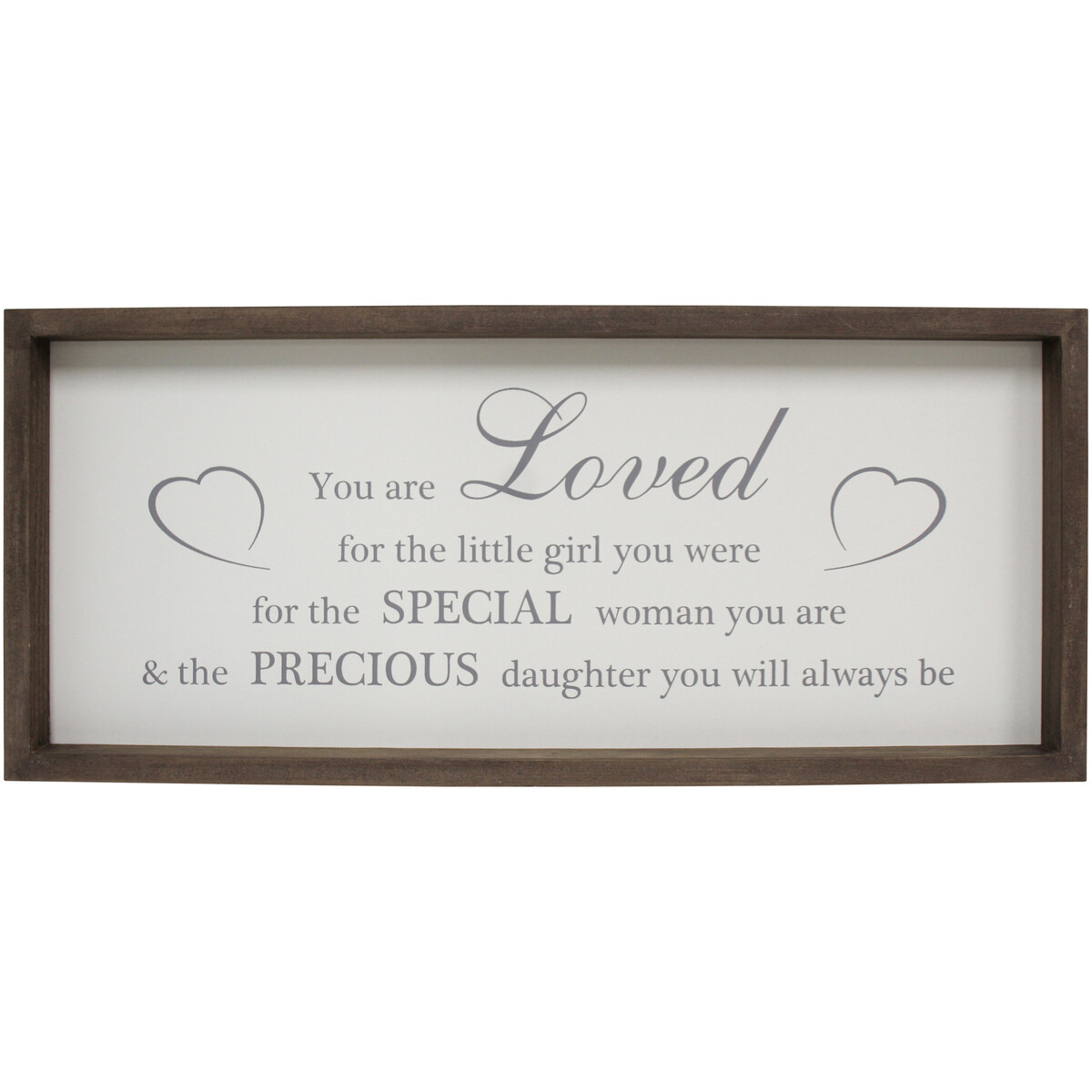 Our Sign Loved Daughter is made up of a pristine and spotless white background, encased with an elegant wooden frame decorated with striking black letters that are uniquely pleasing to the eye.