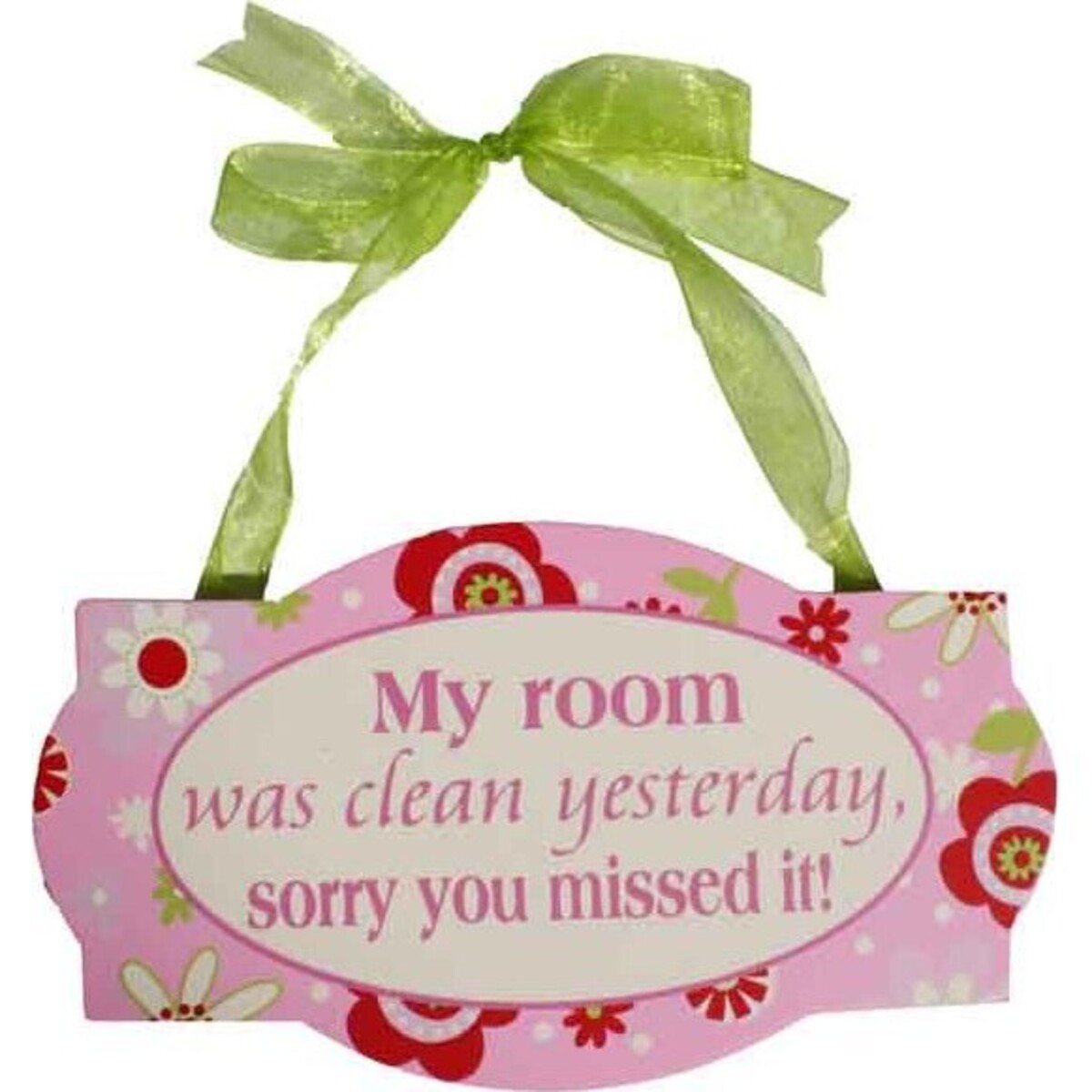 This "My room was clean yesterday, sorry you missed it!" hanging sign is a little note to those who encounter the aftermath letting them know that, at one point, it was in fact clean despite its current condition. Who knows, maybe one day, they'll be able to see in completely spotless condition, but in the meantime, at least you have the sign letting them know what they're in for.