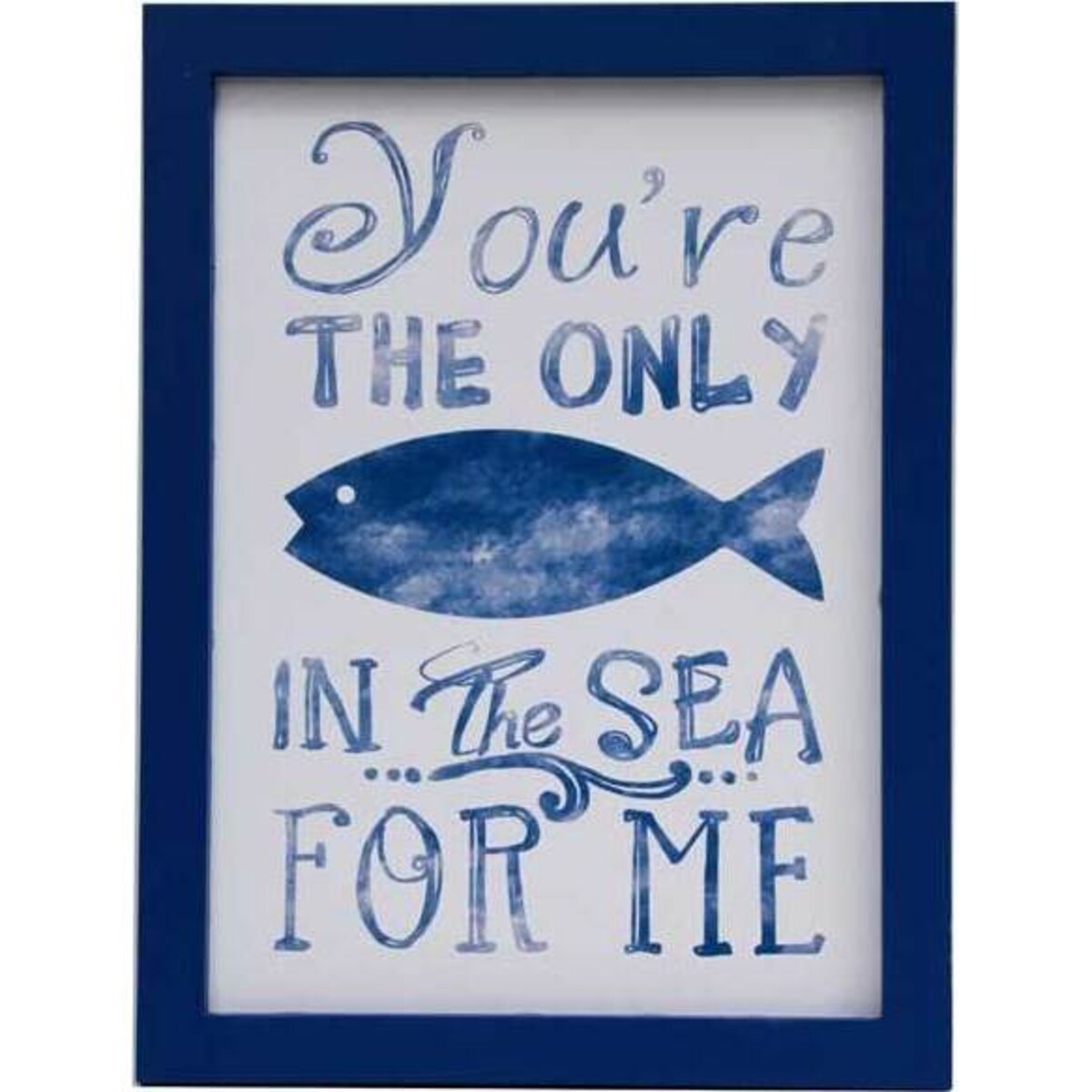 This sign 'You are the only fish in the sea for me' features an outline and words of navy blue with drawing of a fish in place of the word itself. It quickly conveys a special feeling to the reader and is an ideal choice of romantic souvenir. Anyone reading these words of encouragement will experience sparks in the heart and find it easy responding in a warm manner. The colour used for inscribing this special message is meant to convey the depth of harmony present between sea waters and blue of the skies which they reflect.