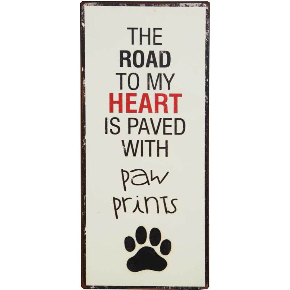 The love for dogs is not overrated ever - in fact such is the love for them that it s seldom possible to express this relationship and this sign board made of tin reflects the same sentiment. A true dog lover will love to own something like this. The tin sign has a painted backdrop on which the lettering and the graphics are wonderfully shown. Make such declarations with such ease be it loving your hobbies, your pets or your quirkier side with these easy to display signs that truly displays what you feel in your heart. Made of tin this 31 cm long sign is about 13 cm in width and looks fabulous because of its white and black theme in which the paw print at the base simply makes your heart sing with joy. Perhaps those who wait to reach home to be able to hear the pitter patter of those paws and the swish of the tail, this is a true tribute.