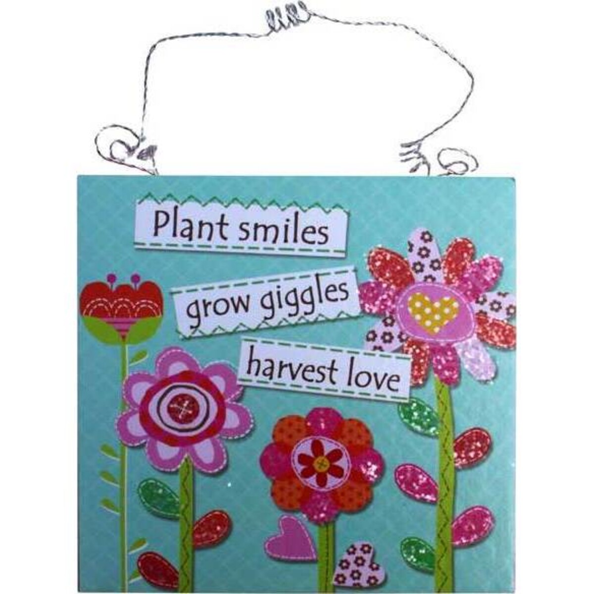 This square little wall hanging made of wood is 13 cm in length and width, and looks fabulous for many reasons. It is small but packs in a punch when it comes to its colour composition as well as it lovely message that reads - Plant Smiles - Grow Giggles and Harvest Love. Printed in a pretty font, easy to understand - this is a message that will be appreciated in any household where children are growing up and where they need to be reminded that life is all about overcoming challenges and never forsaking ones happiness despite all kinds of difficulties. The corn flour blue background, the four multicoloured flowers and the message all come together in a splendid splash of colour. A lovely hanging for the children's room or any part of the house which may need a little help in making it colourful and cheerful. The wire attached at the top can be used for hanging this from any wall, or almirah door. The very fresh country feel of the hanging makes it ideal for homes where the family shares good times together and where laughter and joy is given a lot of premium.