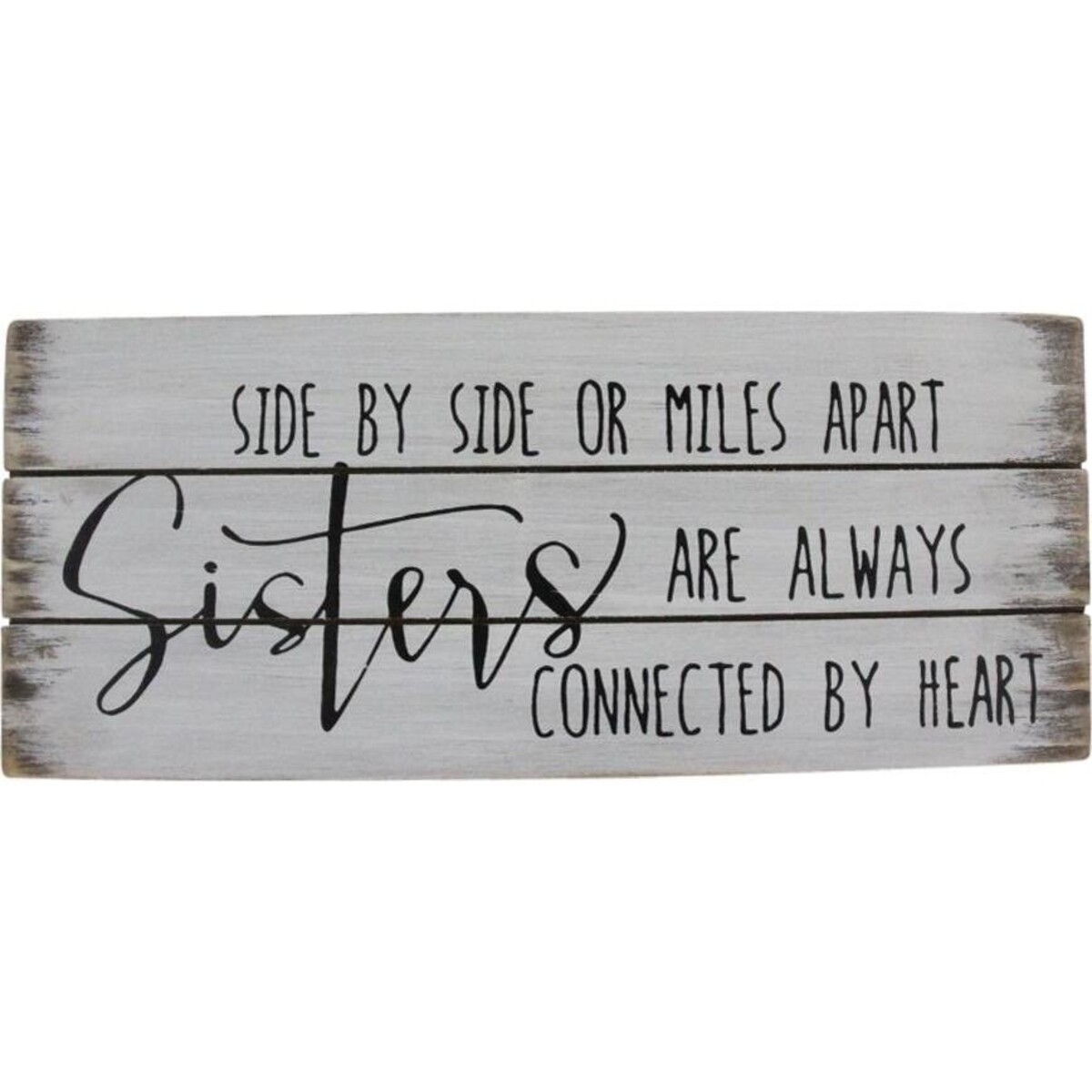 The words say it all-while sisters might grow up and go their own ways, there is no doubt an umbilical relationship they both share that cannot quite be described-born from the same heart and forever united in whatever they do in life. Despite the distance geographically-this small little addition in your space will help you wear your deepest emotions in the simplest possible way. It would also be a great dedication to your sibling in the form of a gift. Plaques and signboards as special as this help build in a lovely relaxed feel in your spaces and the kind of shabby chicness this design brings with it, ités bound to make it all the more informal ad help you add that tiny bit of cheer to even the most formal of settings. Made of wood and given a white coat of colour, the print on this signboard is in black that looks riveting and most attractive. The length of the signboard is 24 cm and its width is 10 cm.