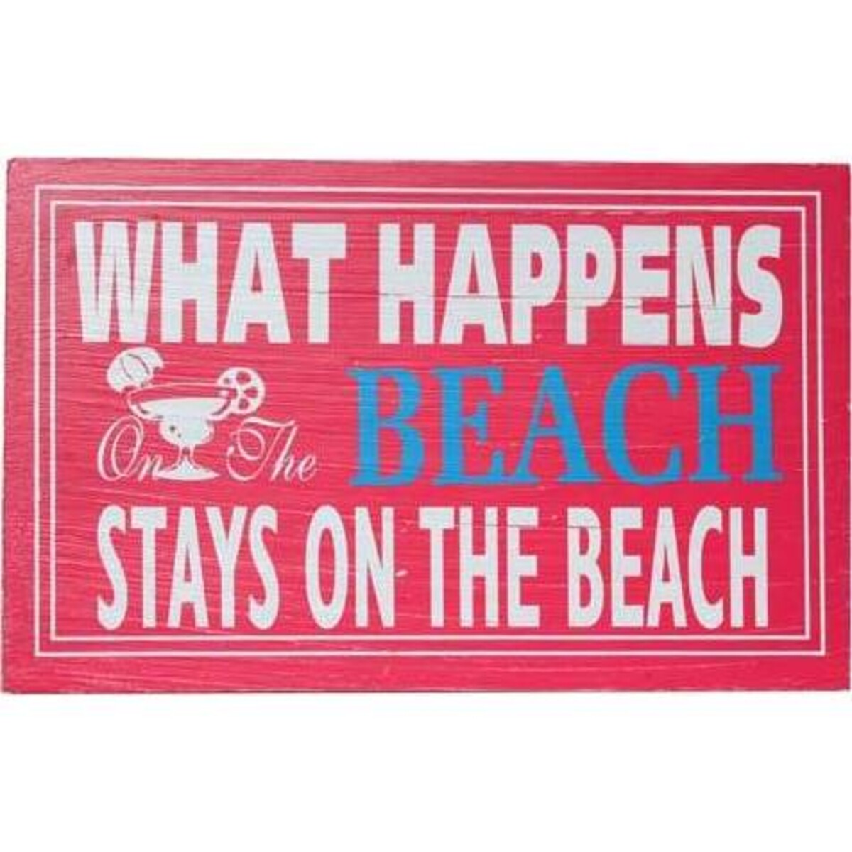 This red sign features a white border, a white daiquiri glass, and wording that reads, "What happens at the beach stays at the beach." While the sign sends a message, it also does double duty by adding a bright burst of colour to rooms with even the most neutral colour palette. Whether you put this sign indoors or out, you're going to love having it as part of your d?©cor. Expect to get a lot of compliments (and questions!) about the piece.