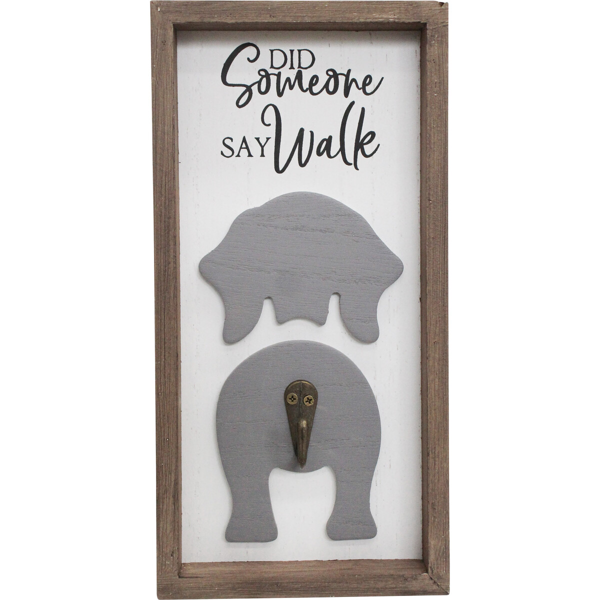 Crafted from high-quality MDF with sturdy metal hooks, the Sign Walk Hook showcases a playful silhouette of a dog's back end, with the tail providing a handy spot to hang keys, leashes, or lightweight items. The light-hearted phrase "Did Someone Say Walk" adds a dash of humor and personality, making it a delightful conversation starter.