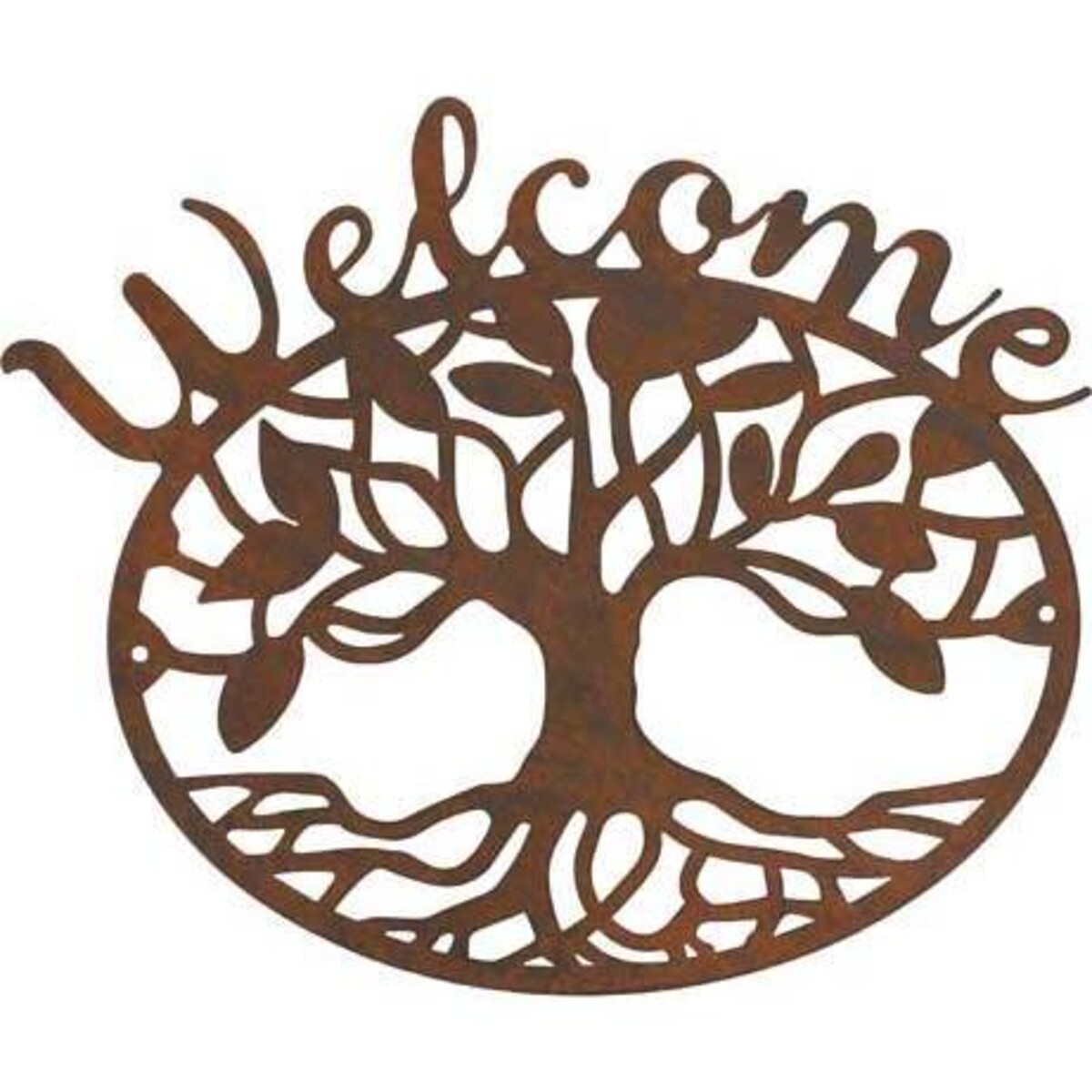 There are so many ways to welcome people into your home but when you place a sign as charming as this metal crafted one, you would be adding more than just a word on the wall. It opens out your heart to the one who rings the bell and waits the cheerful smile you are going to greet the person with. It makes you see and feel like a better host and this in fact does half your job-to make your guest feel welcome. You wall would be glad to host this lovely antique finish sign that has been crafted from metal, given a lovely rusty red colour and a design that is truly eclectic. The oval shape holds a large tree whose roots as wide spread as its branches giving a feeling and a symbolism of a caring and loving tree whose branches spread out to encompass many creatures within it-sheltering them and nurturing life. The letters of the word reside on top in flourishing font -letters carved with much love. Place it outside tout home or in space that your guests will see the instant they enter your home.